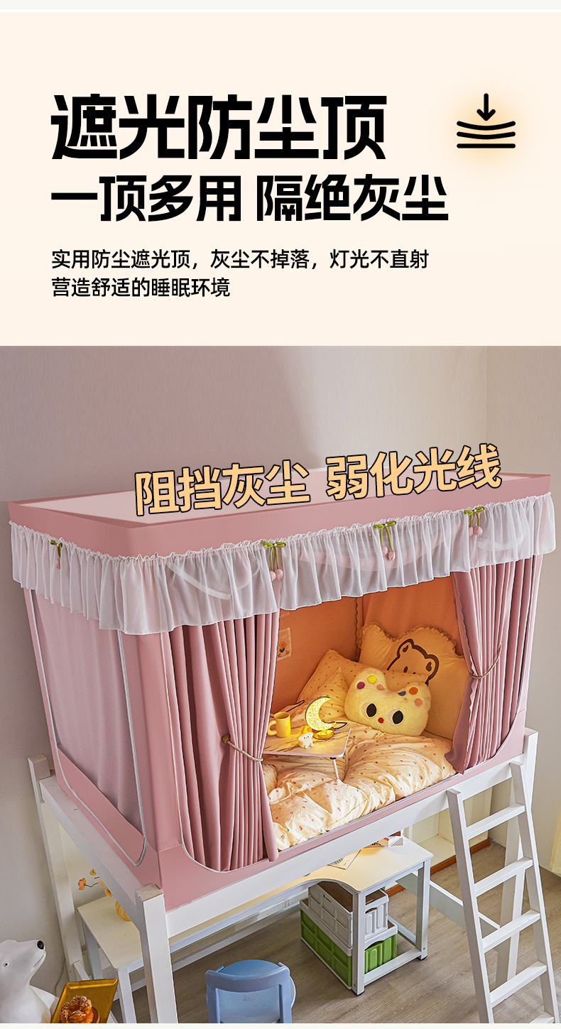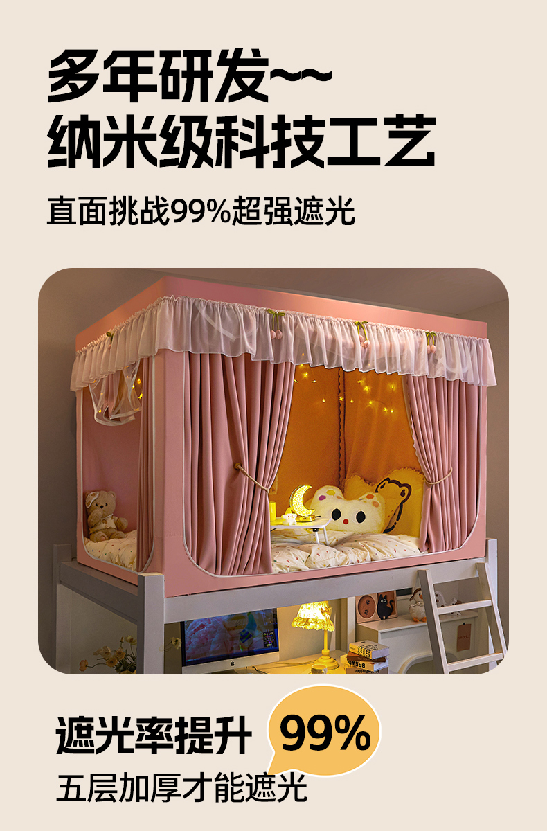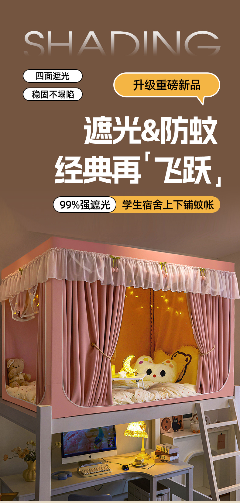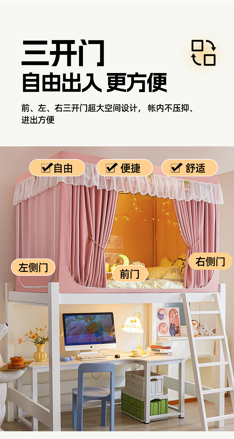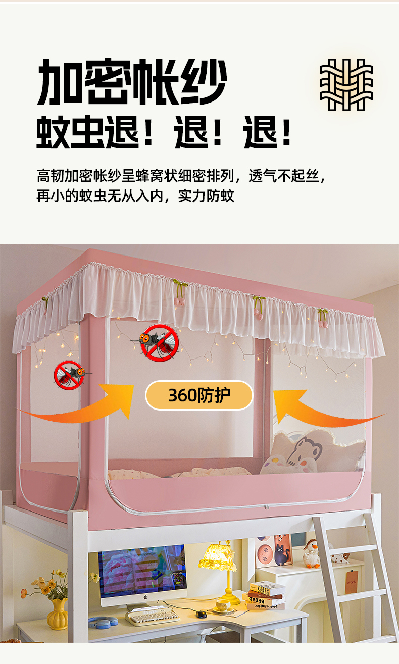 (总)艾晶美家纺有限公司 2025新款公主学生全包上下铺遮光床帘学生蚊帐