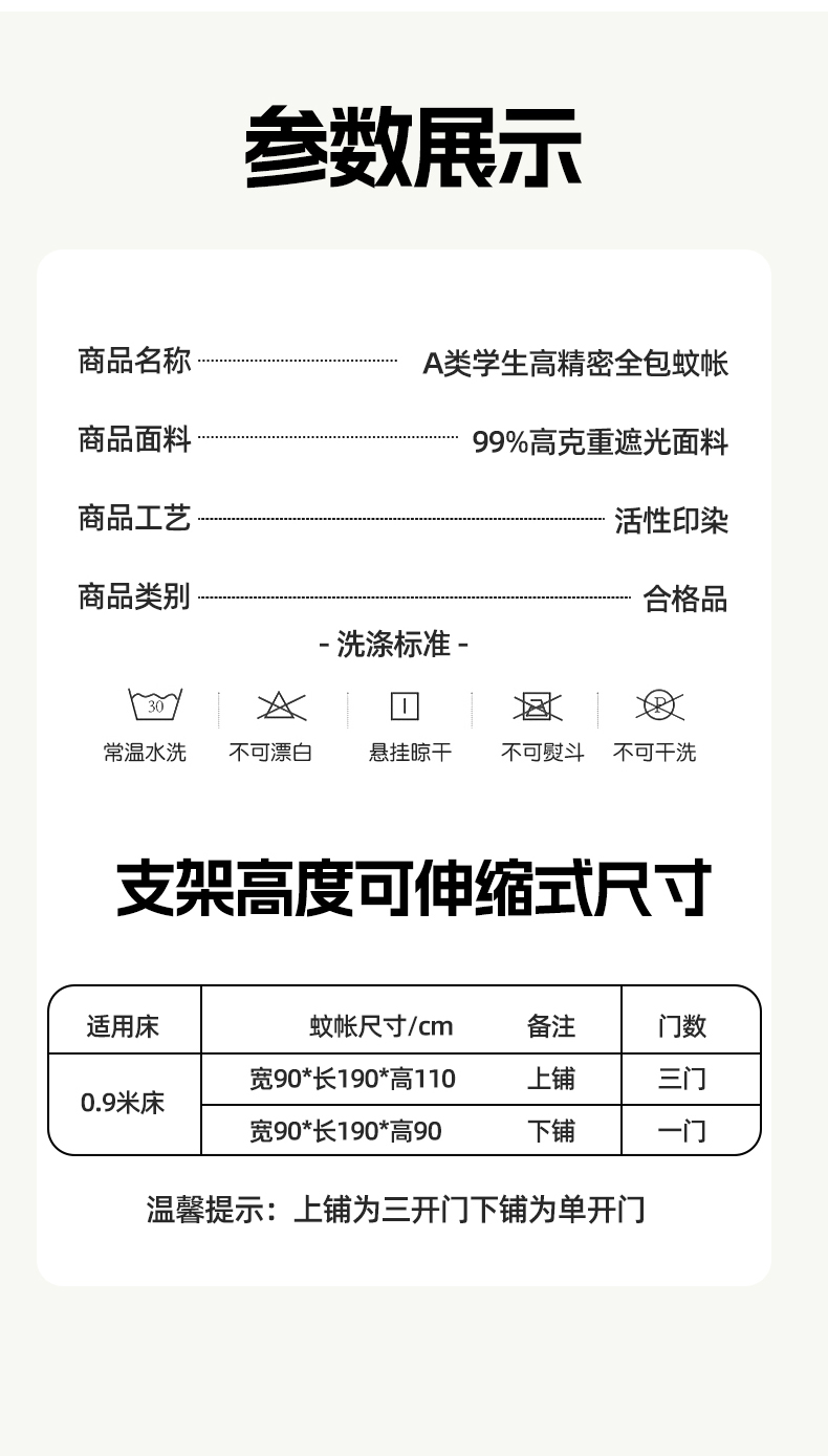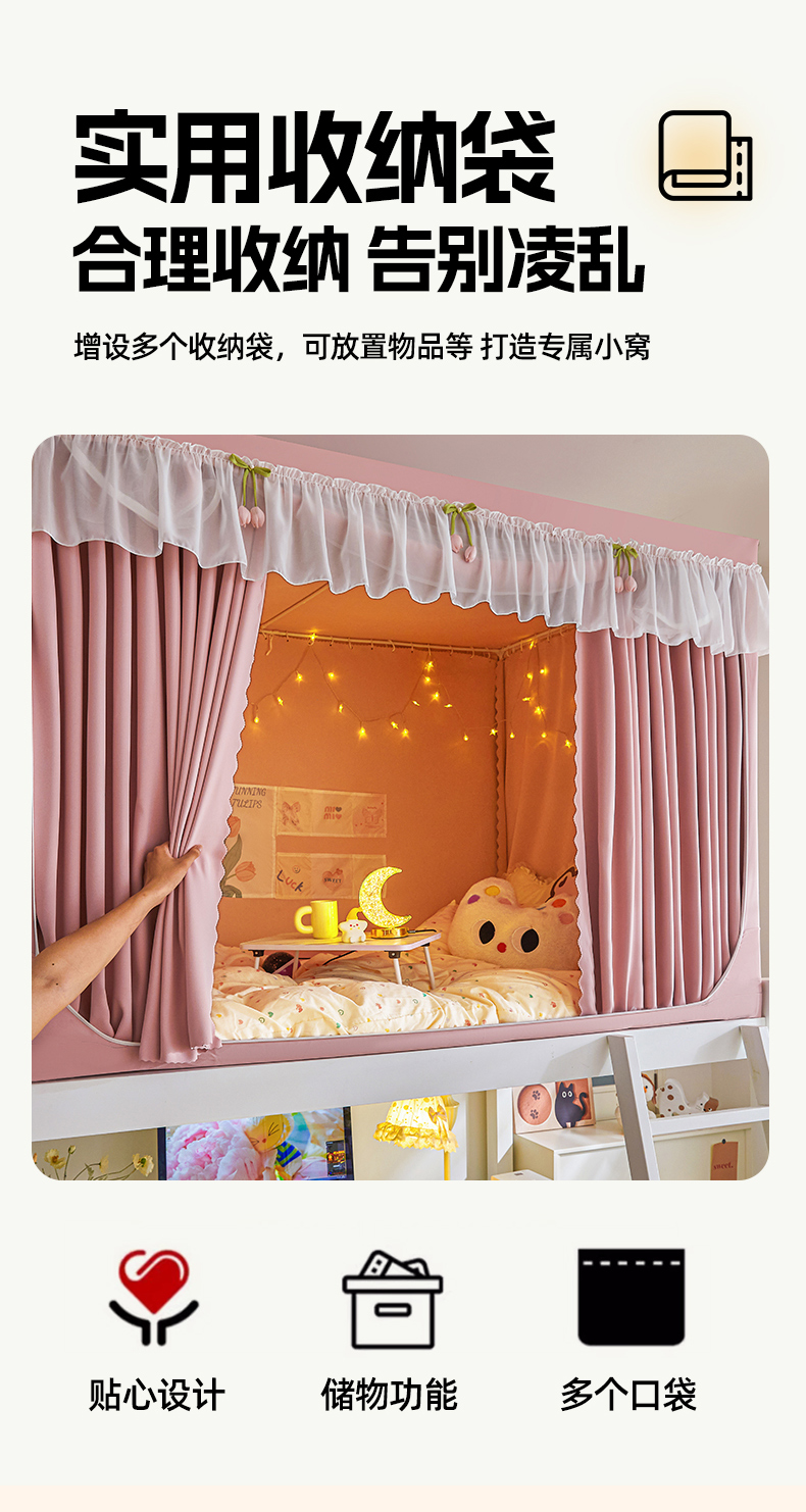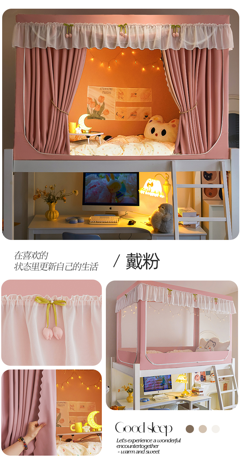 商品名称:(总)艾晶美家纺有限公司 2025新款公主学生全包上下铺遮光床帘学生蚊帐