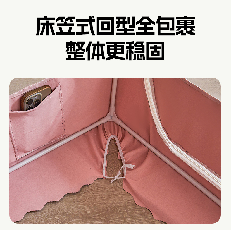 (总)艾晶美家纺有限公 2025新款防摔坐床外穿杆全底蚊帐,艾草绿,豆沙粉,高级灰,奶咖黄