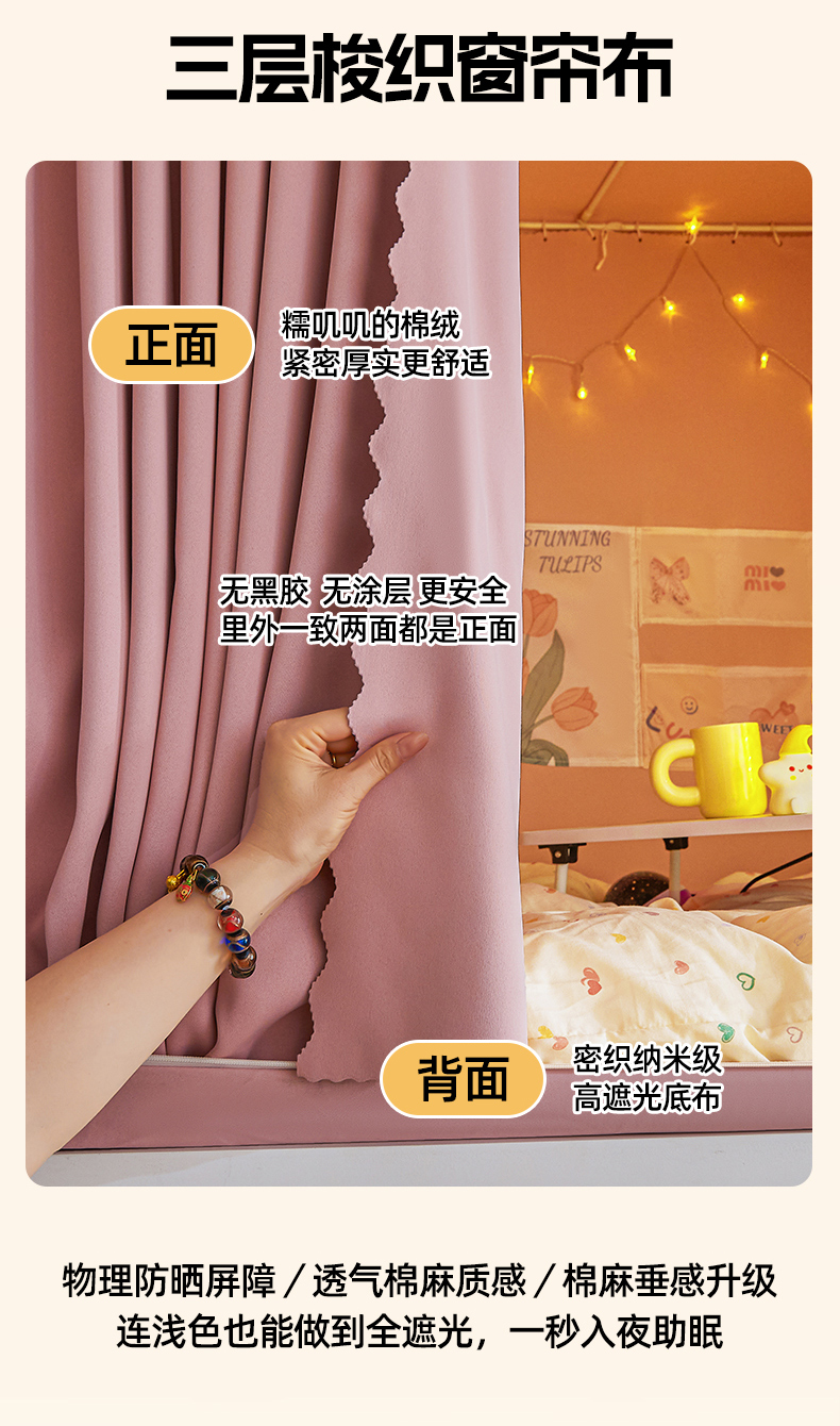 (总)艾晶美 2025新款学生全包一体式窗帘布遮光学生蚊帐,裸粉,灰蓝,卡其,烟灰,另加卡通配饰