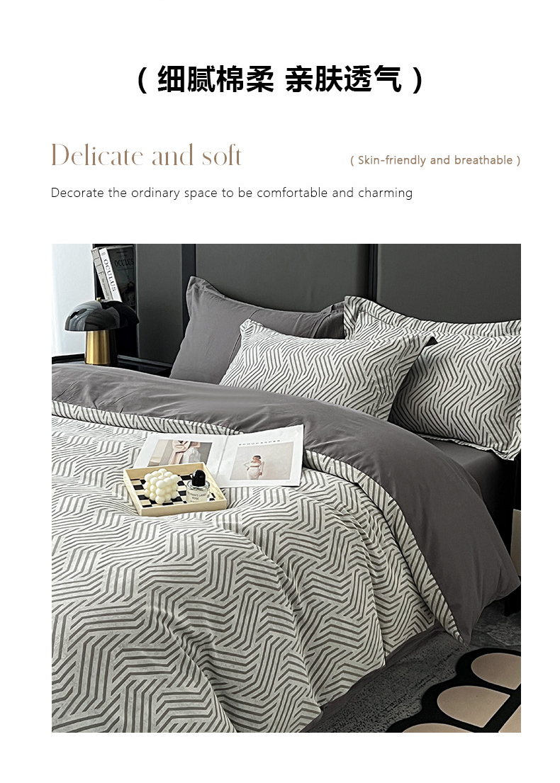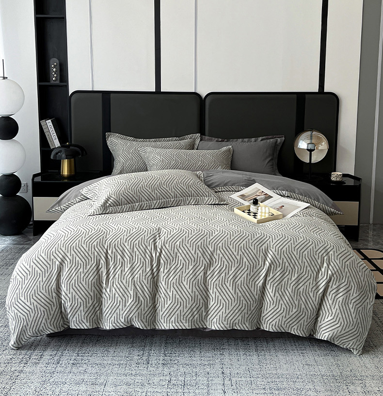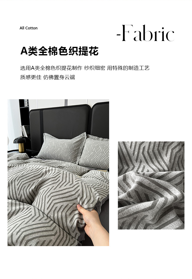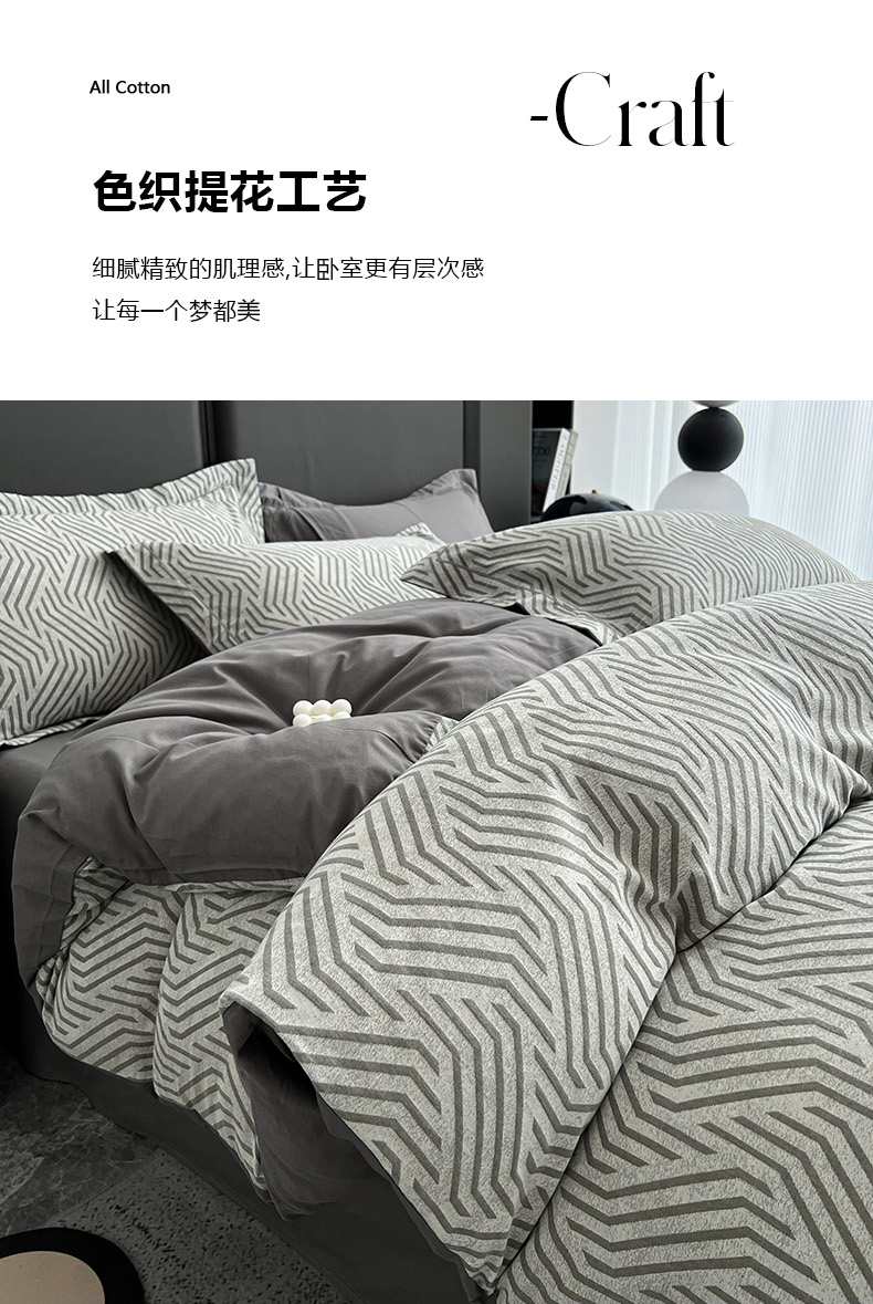 当前位置: 91家纺网 > 商品网购 > 床品套件 > 四件套 > 全棉普通四件套 > 锦彩家居 2025新款A类60支全棉纯棉色织提花四件套-复古风系列 简雅几何-灰