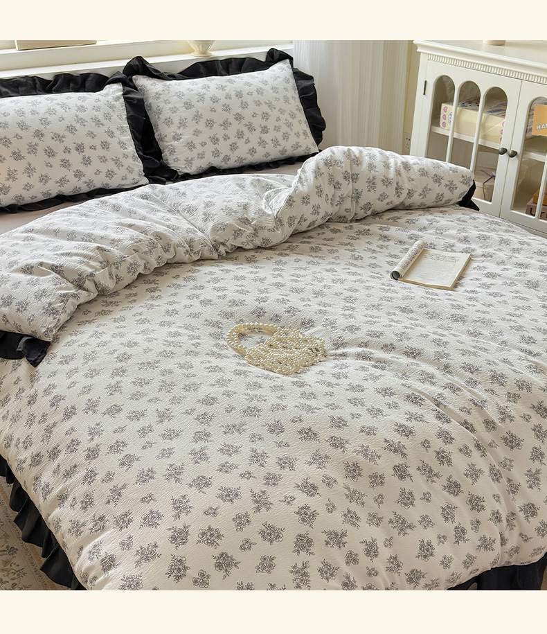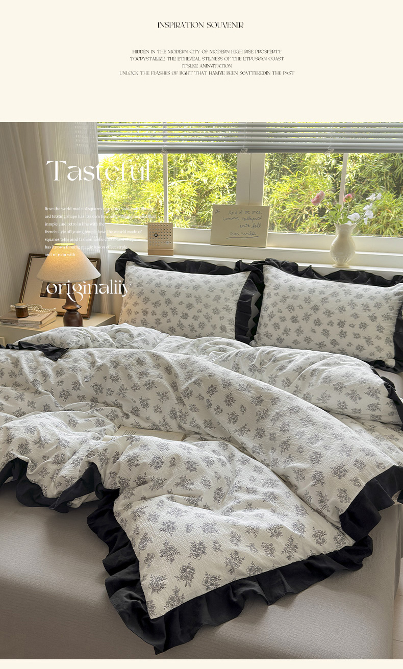 (总)喜颜 2025新款云感提花皱皱棉爆款花边四件套-赫本风