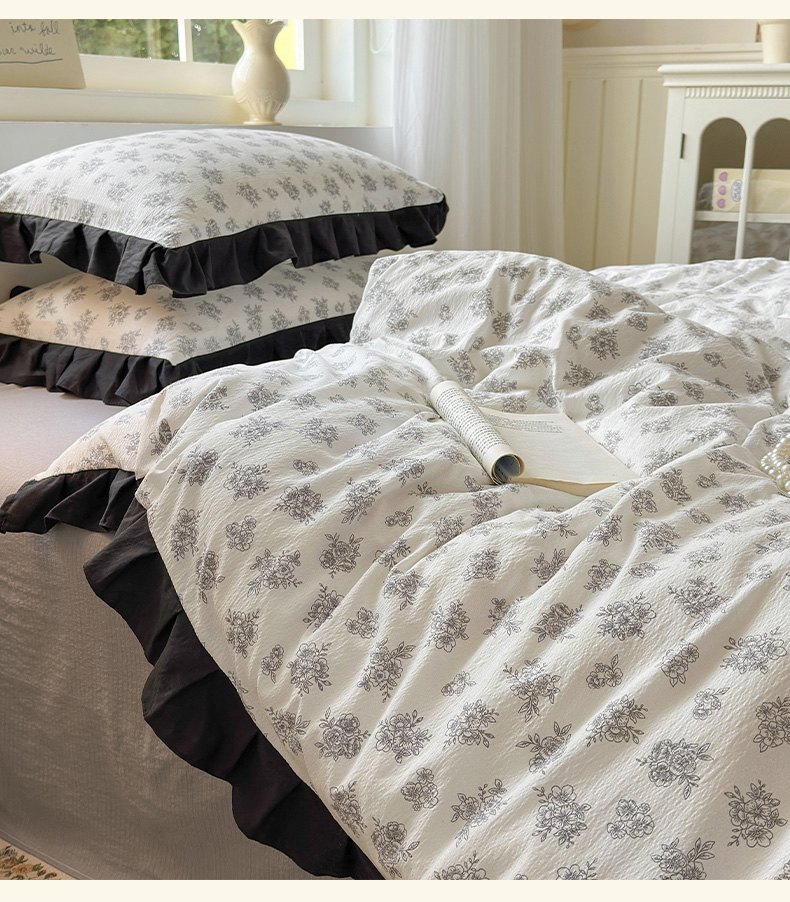 (总)喜颜 2025新款云感提花皱皱棉爆款花边四件套-赫本风,繁花,蝴蝶黑,花丛小熊,花束,棉棉兔,陌上花开,炫彩蝴蝶