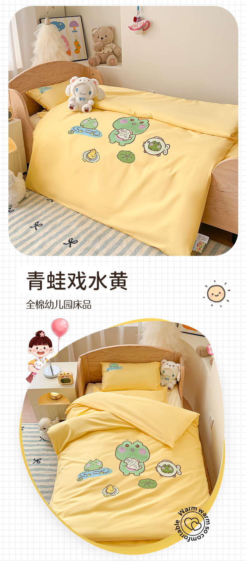 当前位置: 91家纺网 > 商品网购 > 床品套件 > 多件套 > 多件套 > 柔享家(原芷澜家纺)2025新款全棉高端贴布刺绣幼儿园套件儿童三件套被子被芯婴童宝宝六件套七件套 青蛙戏水黄