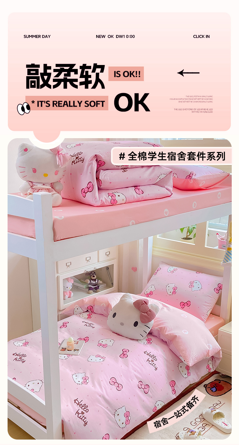 当前位置: 91家纺网 > 商品网购 > 床品套件 > 三件套 > 博雅 2025春夏新款三丽鸥全棉纯棉卡通学生宿舍三件套上下铺三件套-小版 粉色蝴蝶结KT