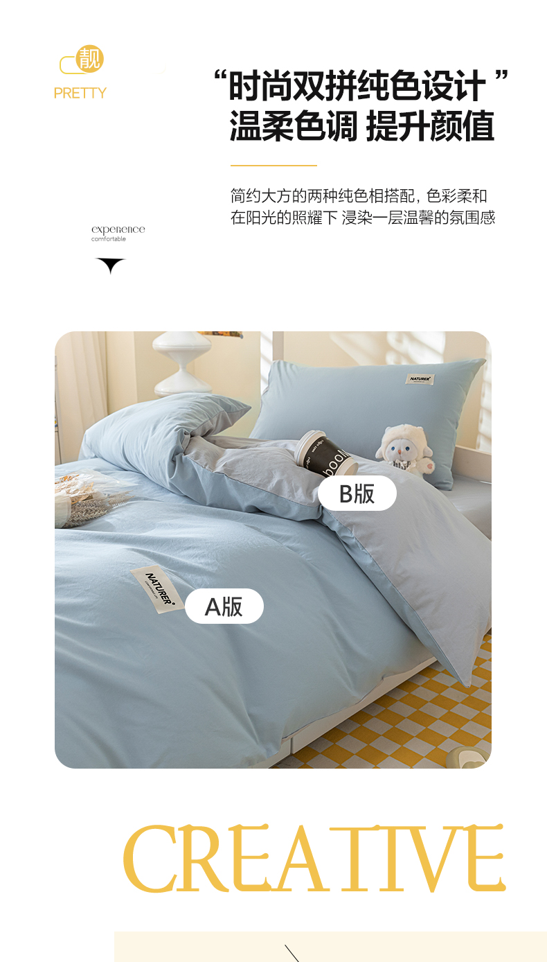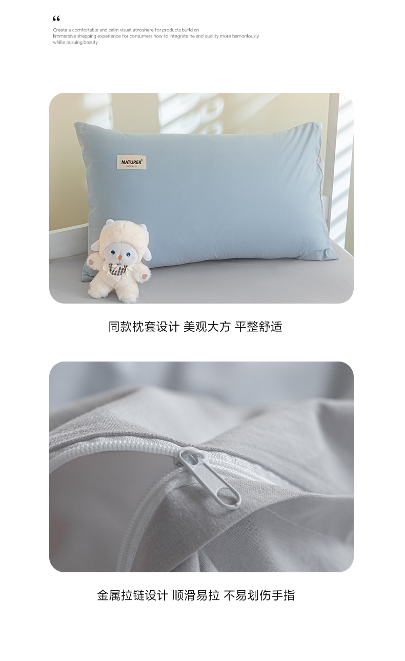 商品名称:佳汐蓝家纺 2025新款A类全棉水洗棉学生三件套 贴标-海青+山灰