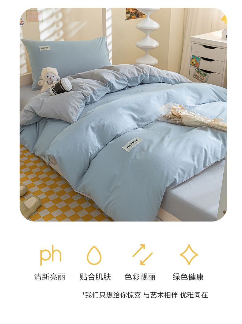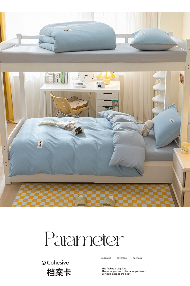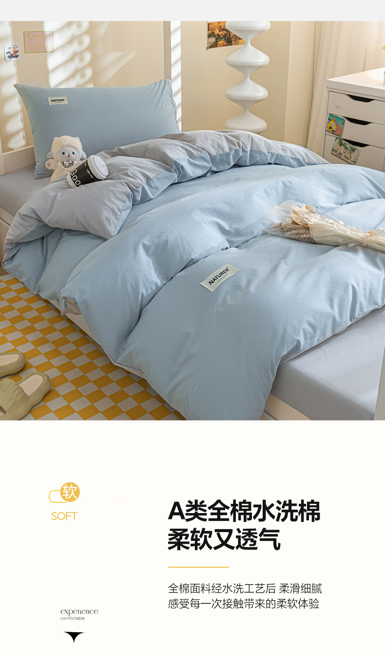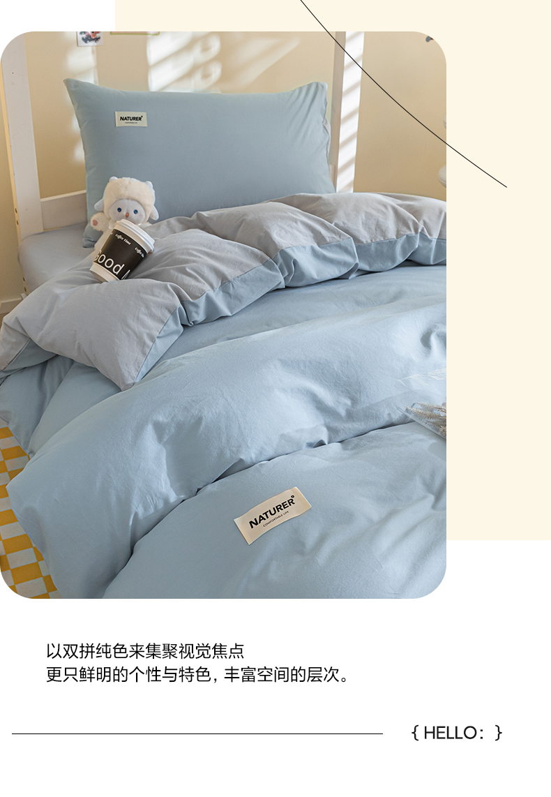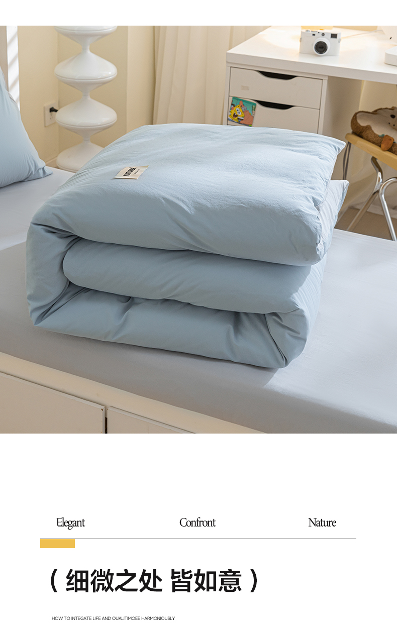 佳汐蓝家纺 2025新款A类全棉水洗棉学生三件套 贴标-海青+山灰