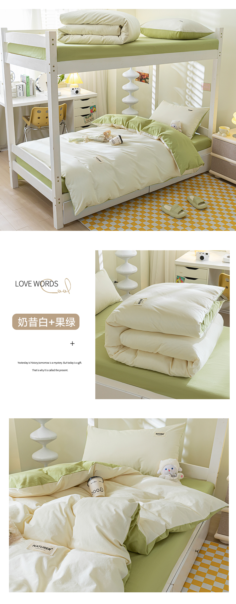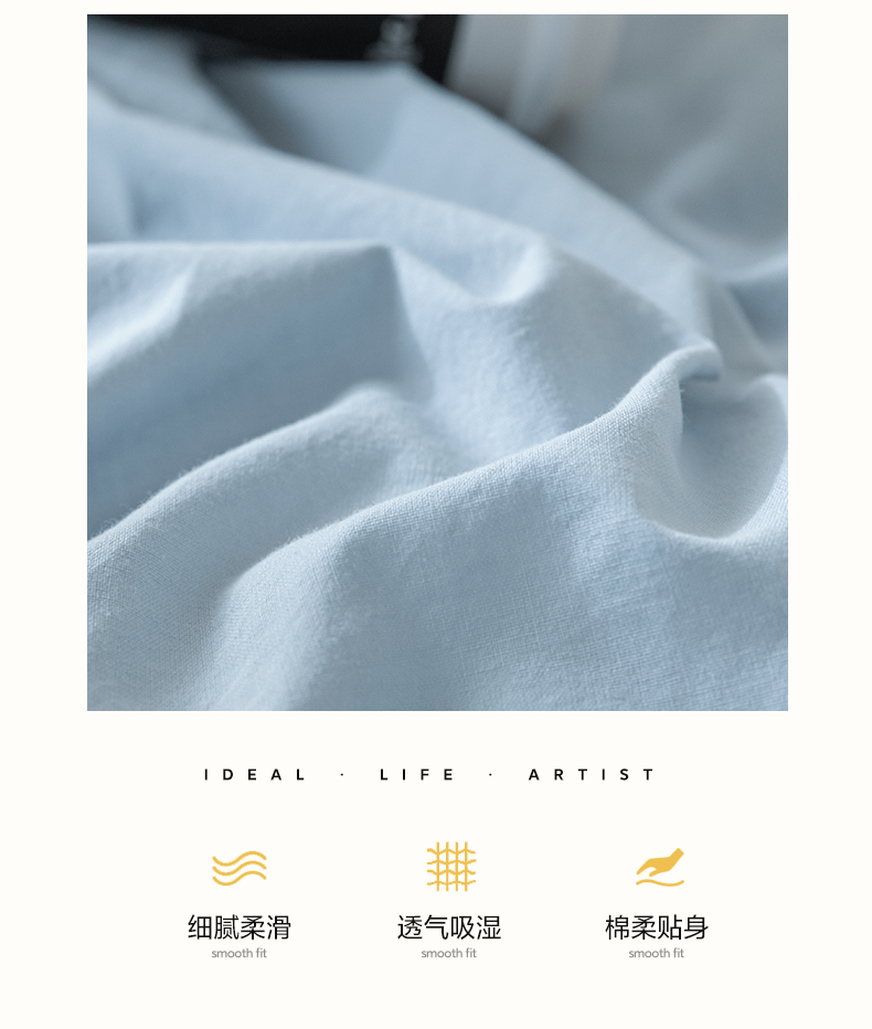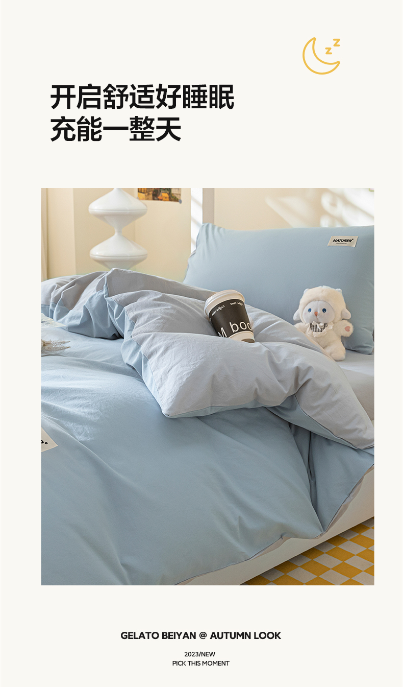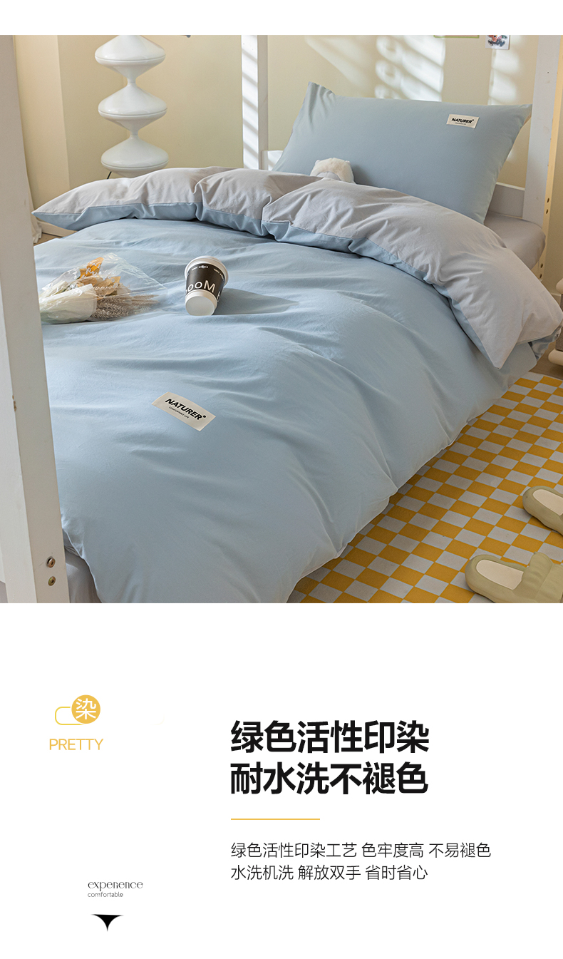佳汐蓝家纺 2025新款A类全棉水洗棉学生三件套 贴标-海青+山灰