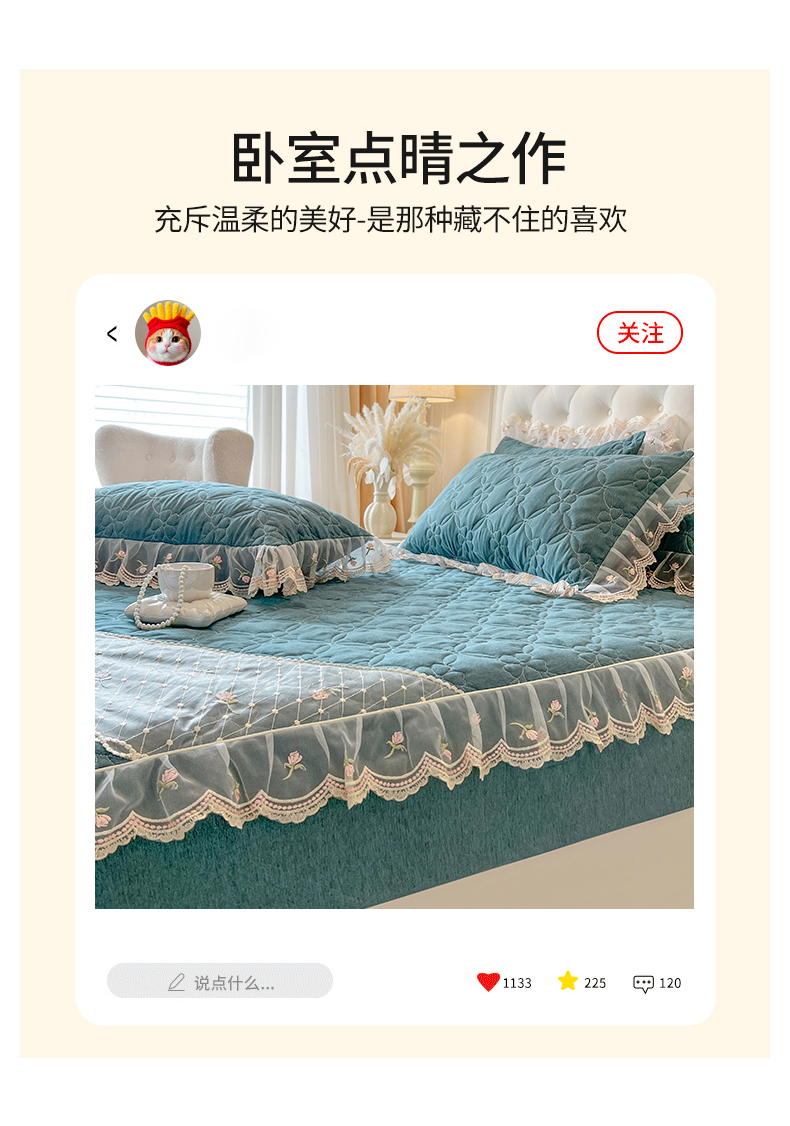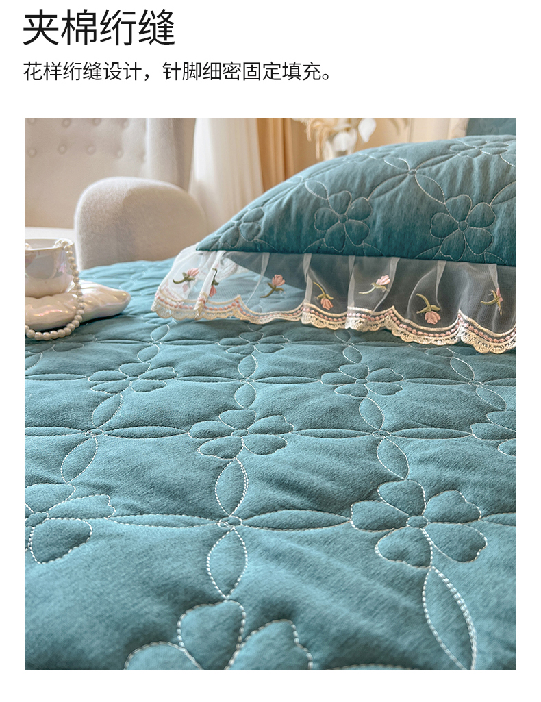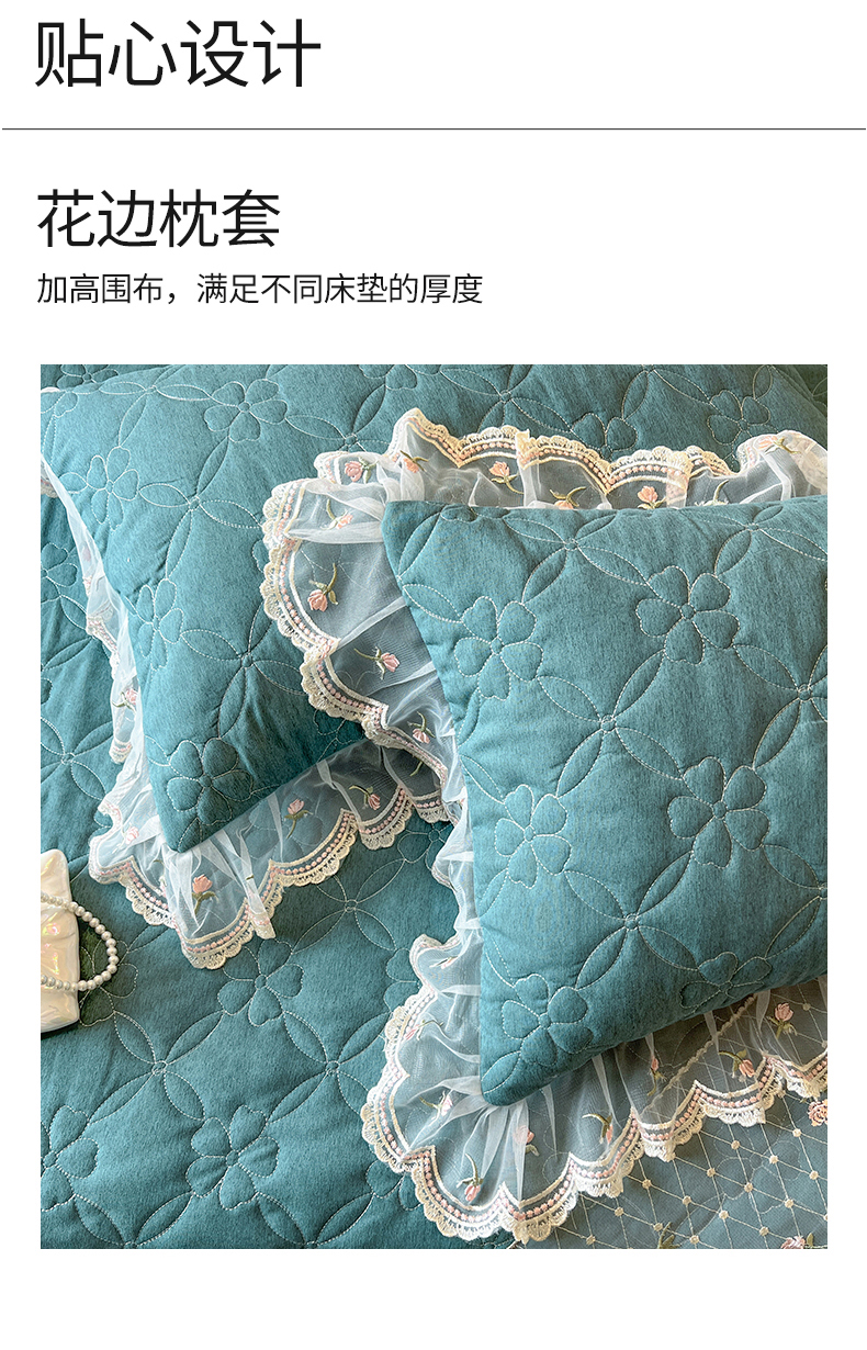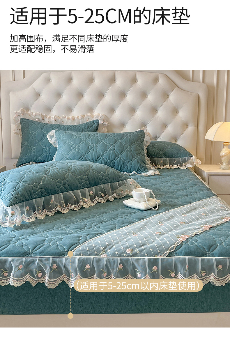 • 91家纺网 家纺一手货源 找家纺 麒豆豆 2025新款色织蕾丝边床裙款床笠-花亦然 花亦然-黛绿色