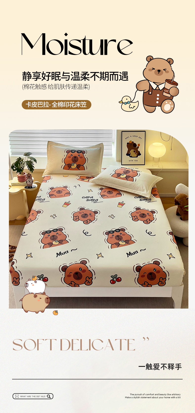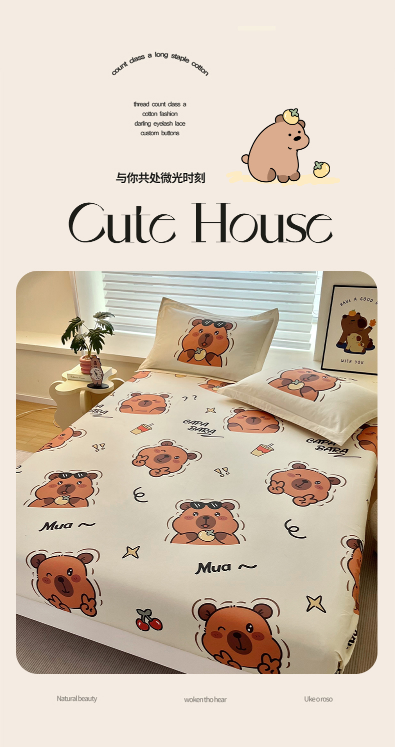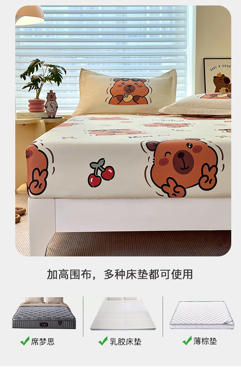 • 91家纺网 家纺一手货源 找家纺 蘭菲家纺 2025新款学生季卡皮巴拉系列全棉印花单品床笠 拉不动
