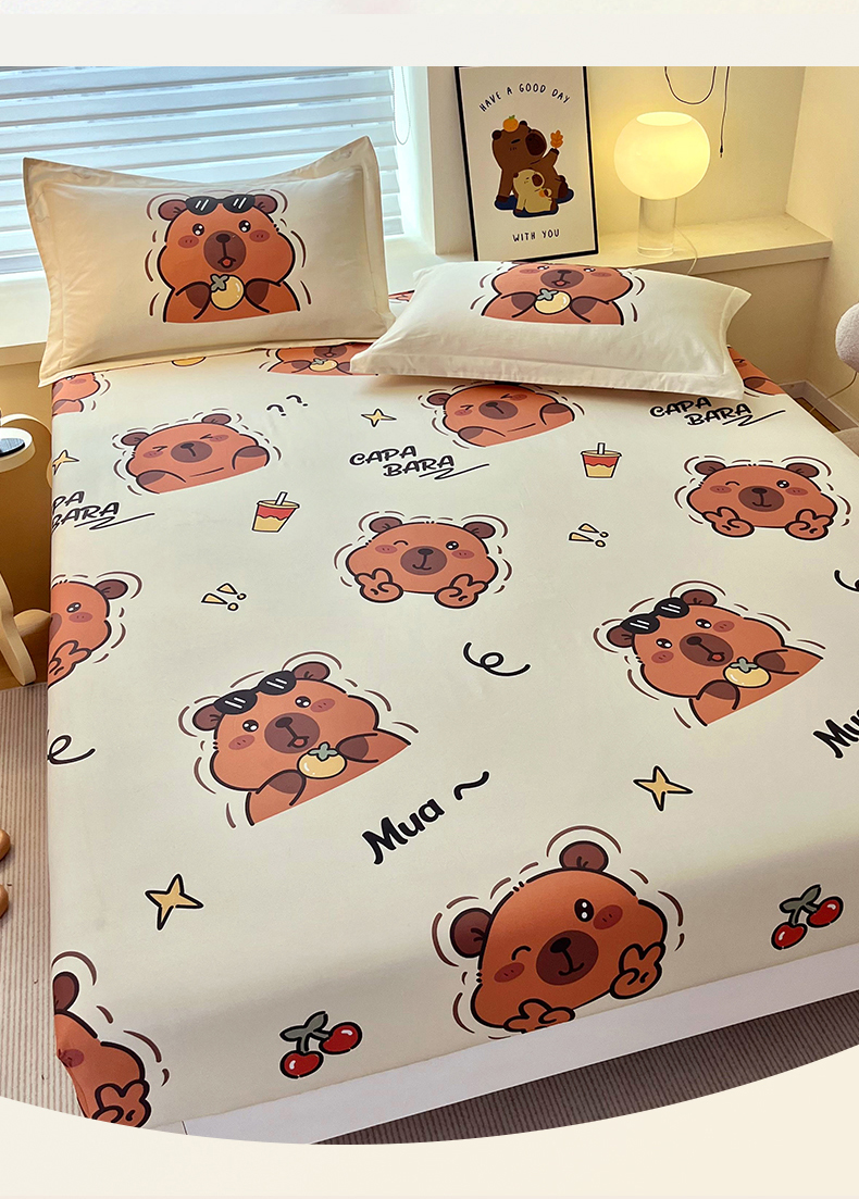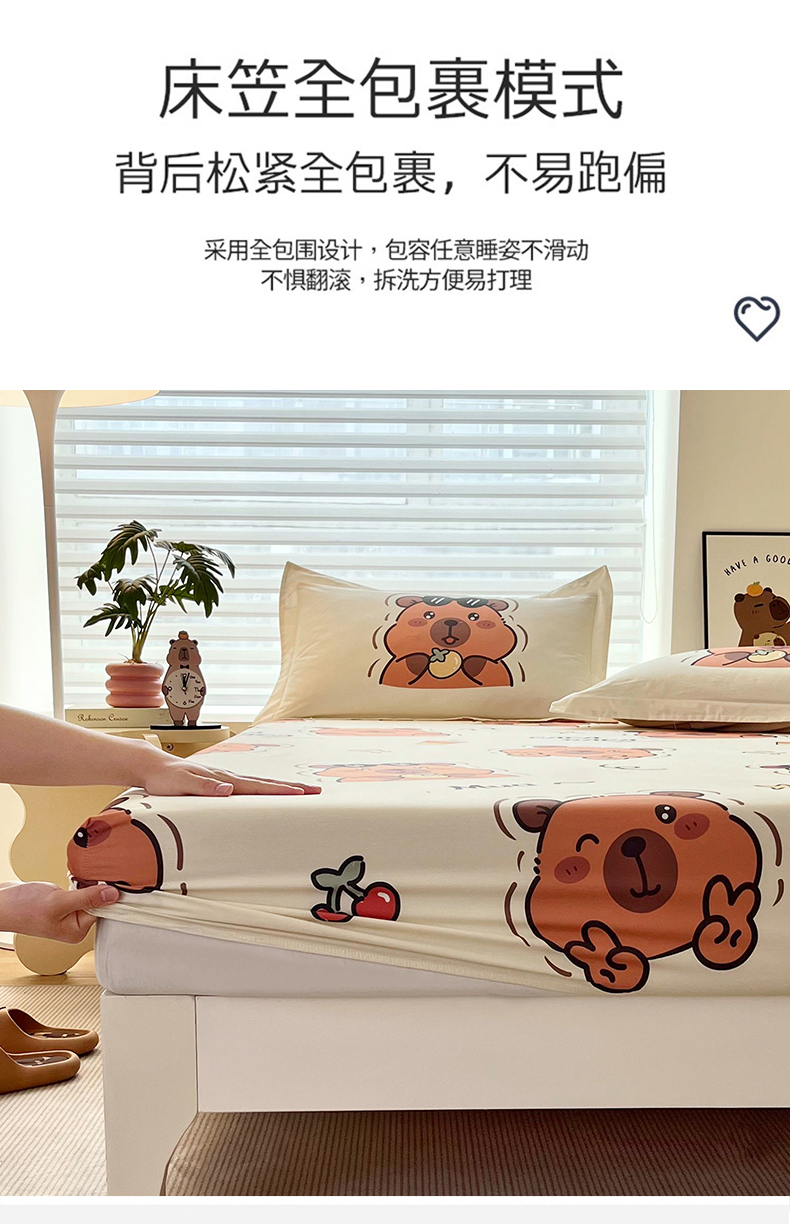 蘭菲家纺 2025新款学生季卡皮巴拉系列全棉印花单品床笠 拉不动