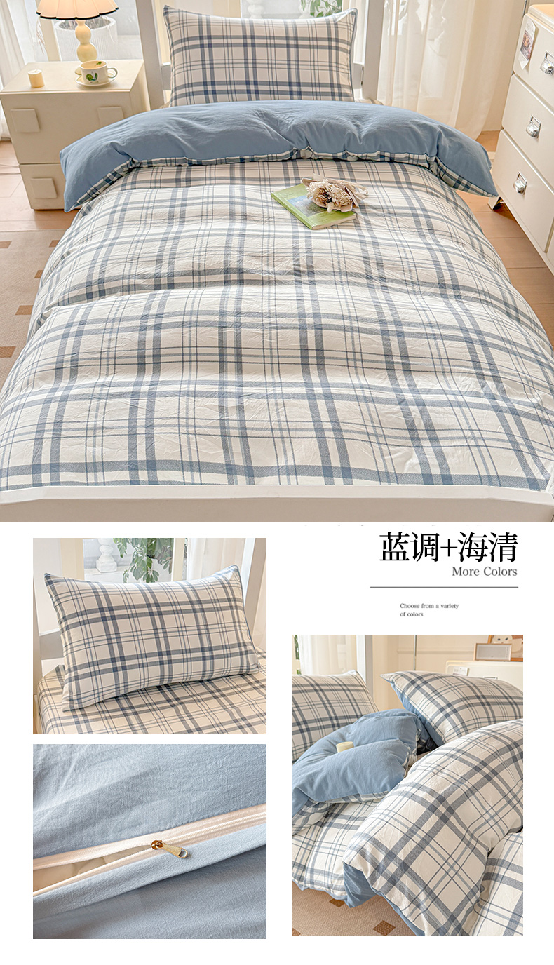 商品名称:(总)盛秋家纺 2025新款水洗棉格子学生小三套套件