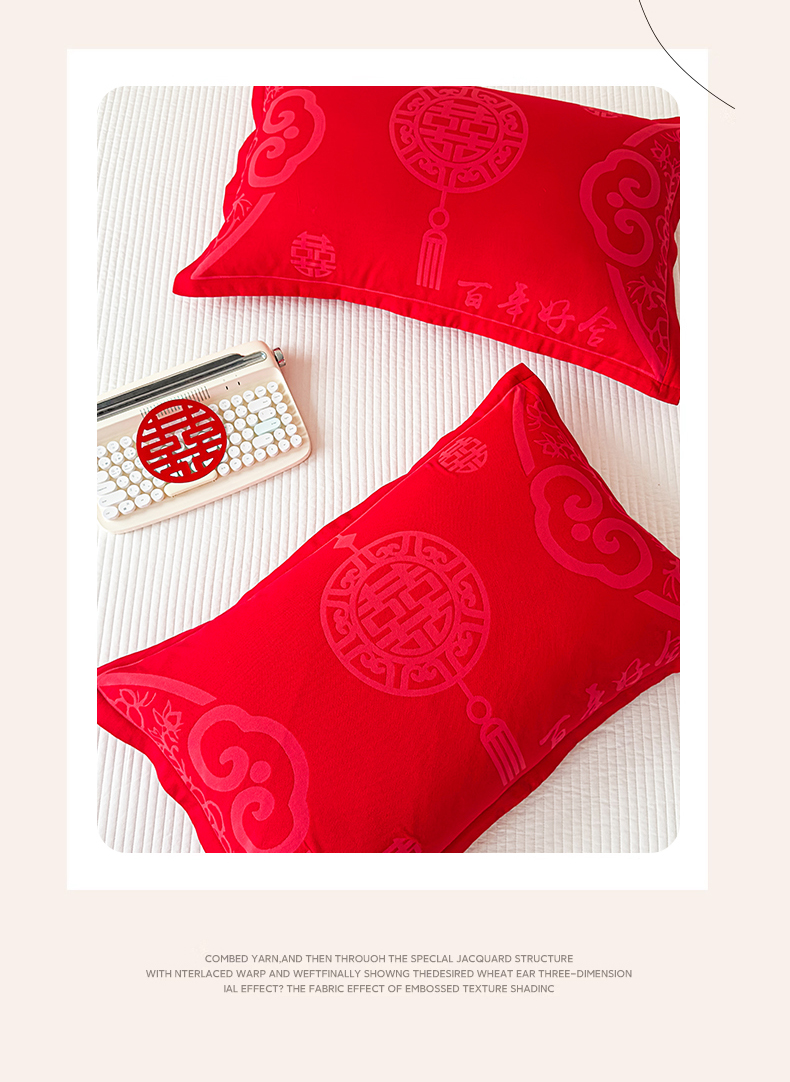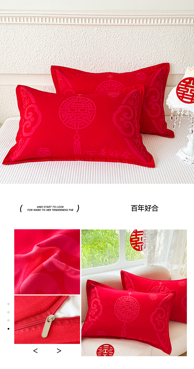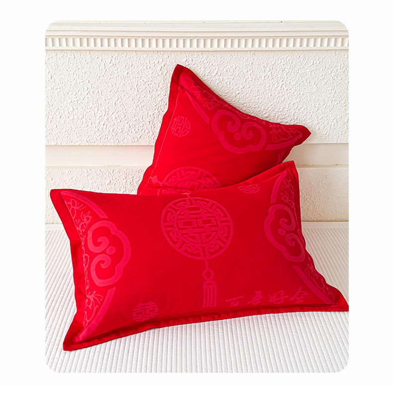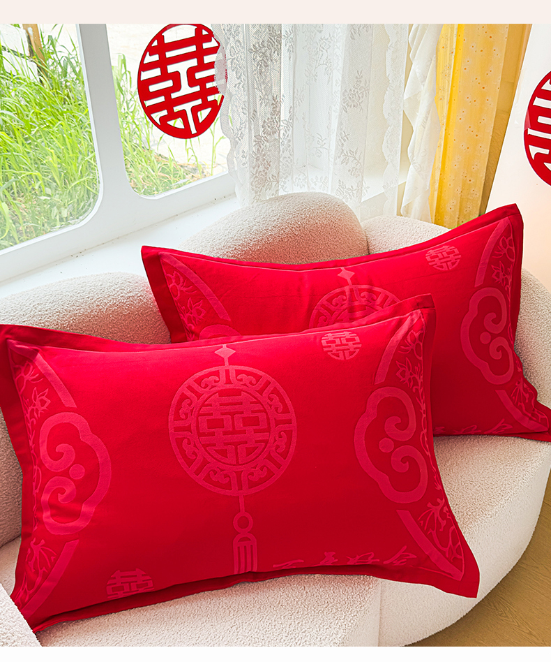 悦然毛巾被 2025新款婚庆大红三层全棉纱布枕套 百年好合
