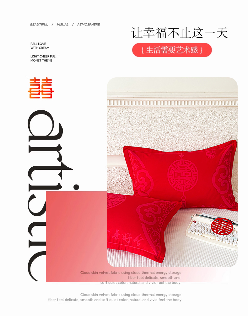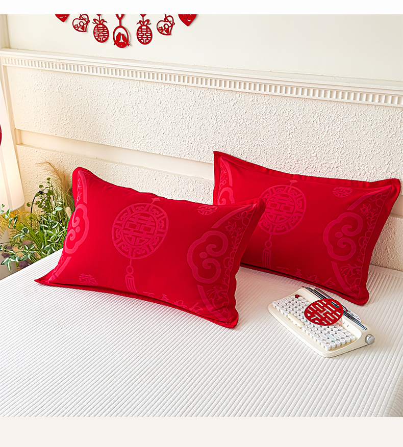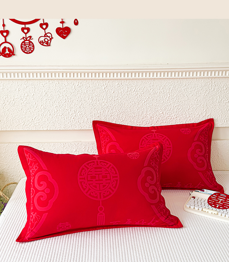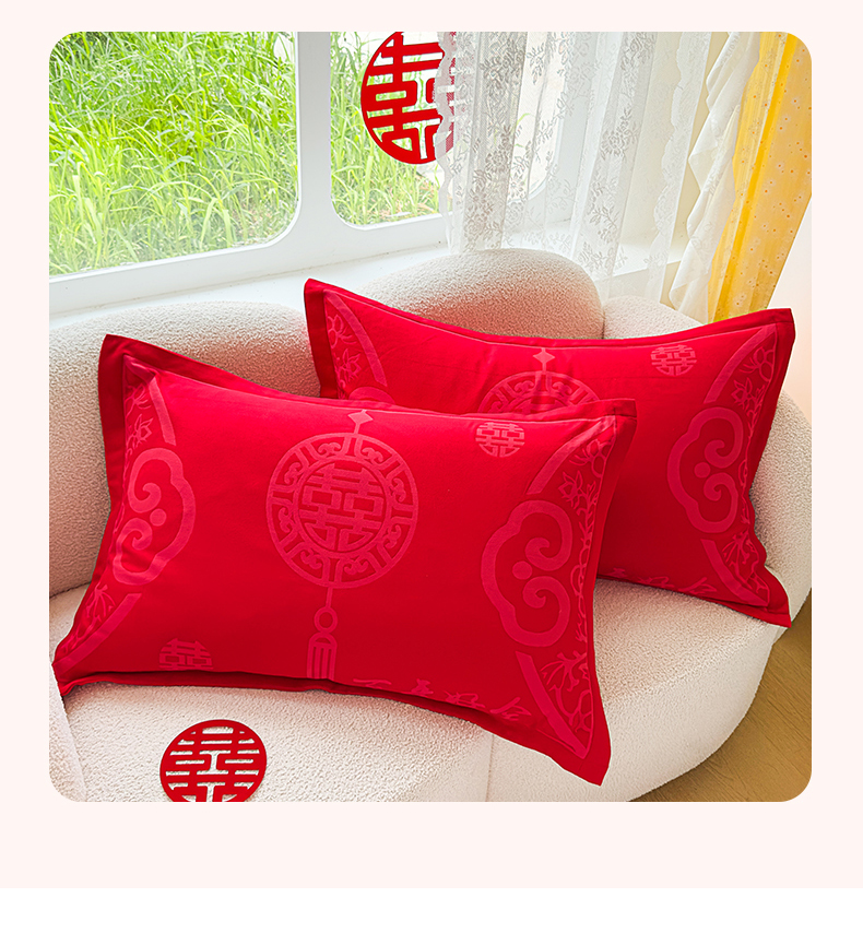 悦然毛巾被 2025新款婚庆大红三层全棉纱布枕套 百年好合