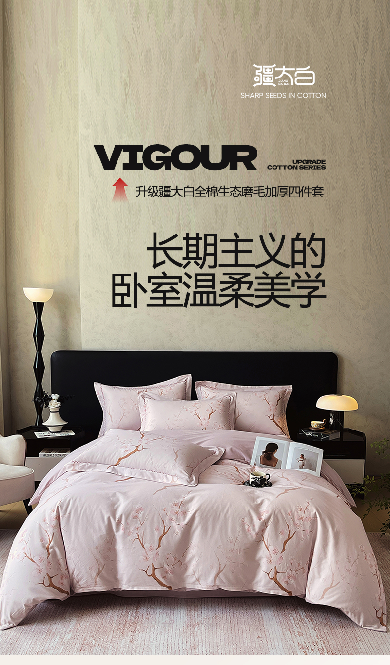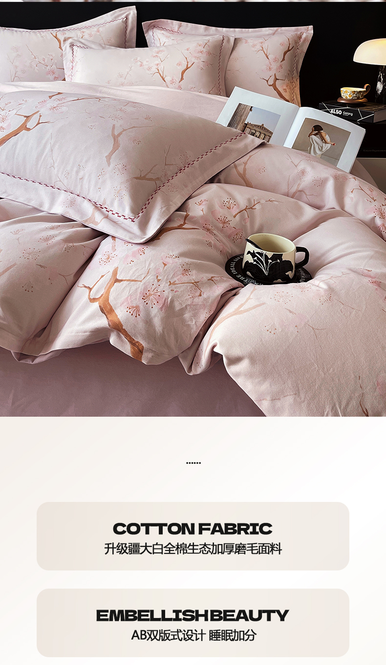商品名称:帅露家纺 2025新款升级疆大白全棉加厚生态磨毛四件套 慕沁