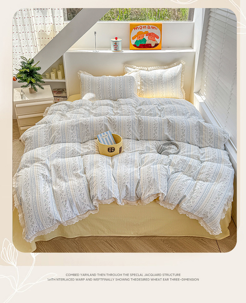 当前位置: 91家纺网 > 商品网购 > 床品套件 > 四件套 > 其它四件套 > 森璐家纺 2025新款亲肤舒适云感双层纱镂空花边四件套 花边款-lk庄园