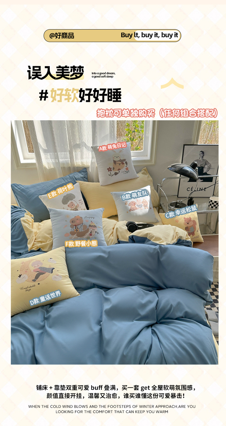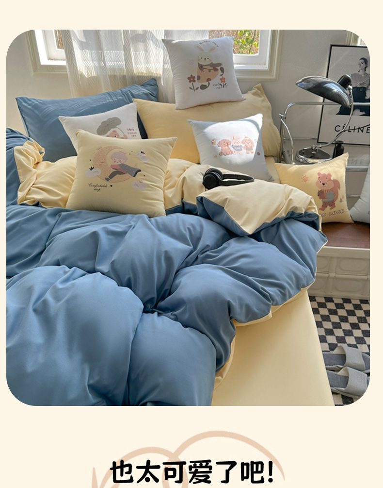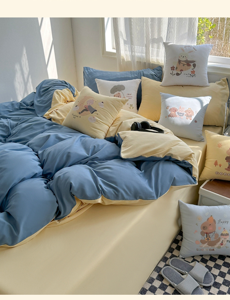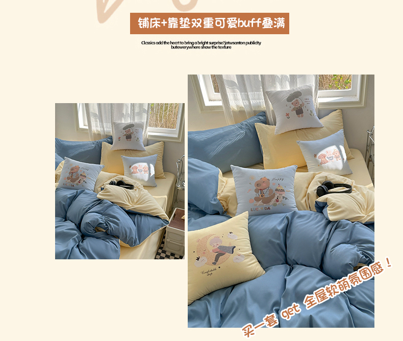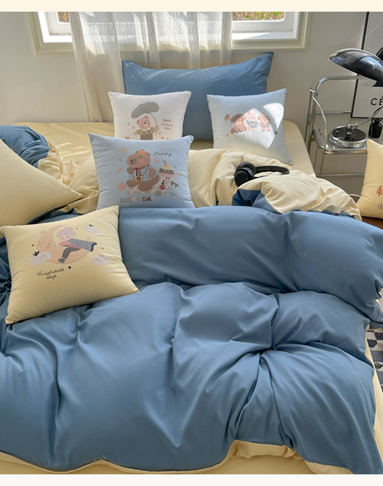 (总)2025新款纯色双拼水洗棉四件套搭配抱枕组合ins风简约纯色学生套件+抱枕组合套装