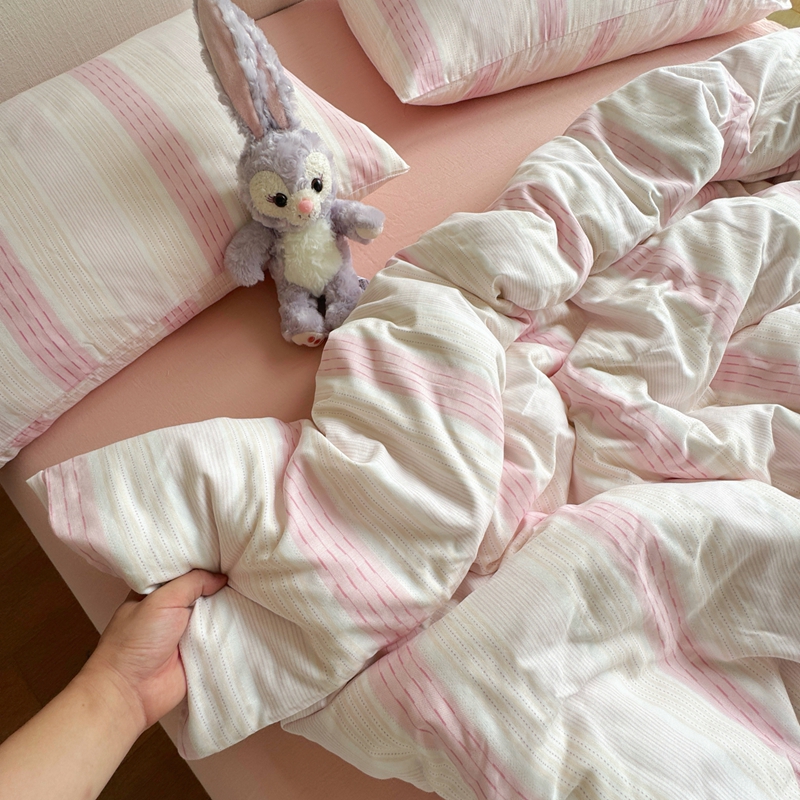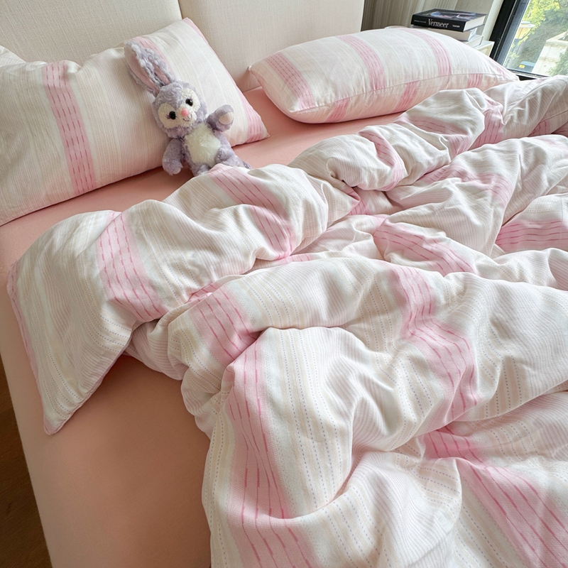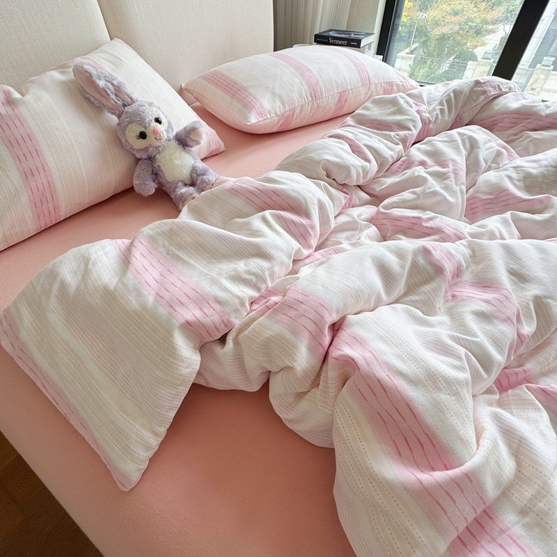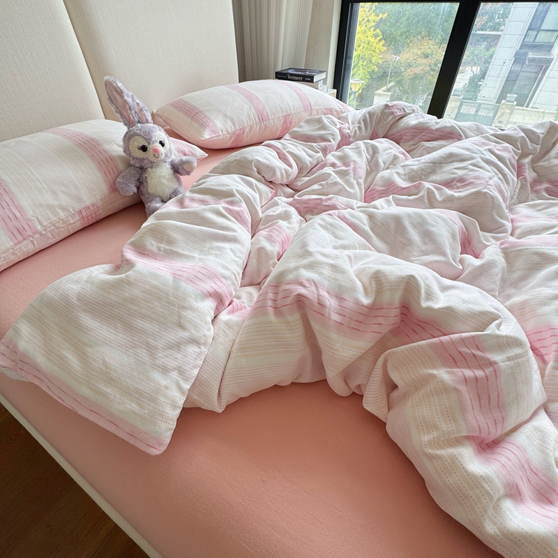 8+8 2025新款全棉A类母婴级抗菌有氧全棉双层纱亲肤全棉小清新印花三件套四件套 简约款-极简主义粉,简约款-极简主义粉