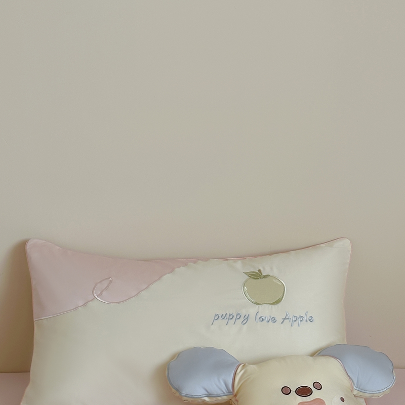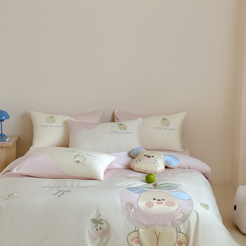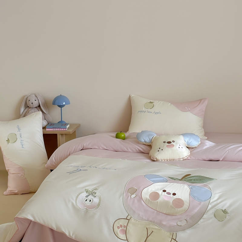 紫桐 Lila lndus2025新款绣花款四件套-苹果狗 白拼粉