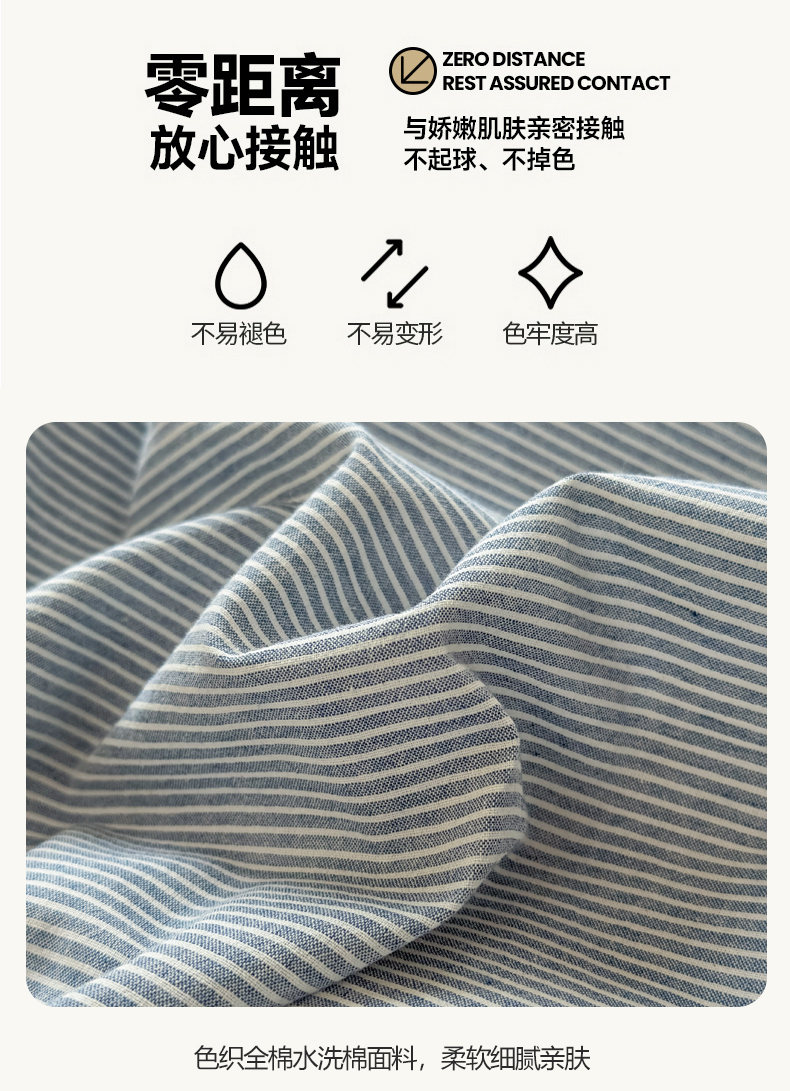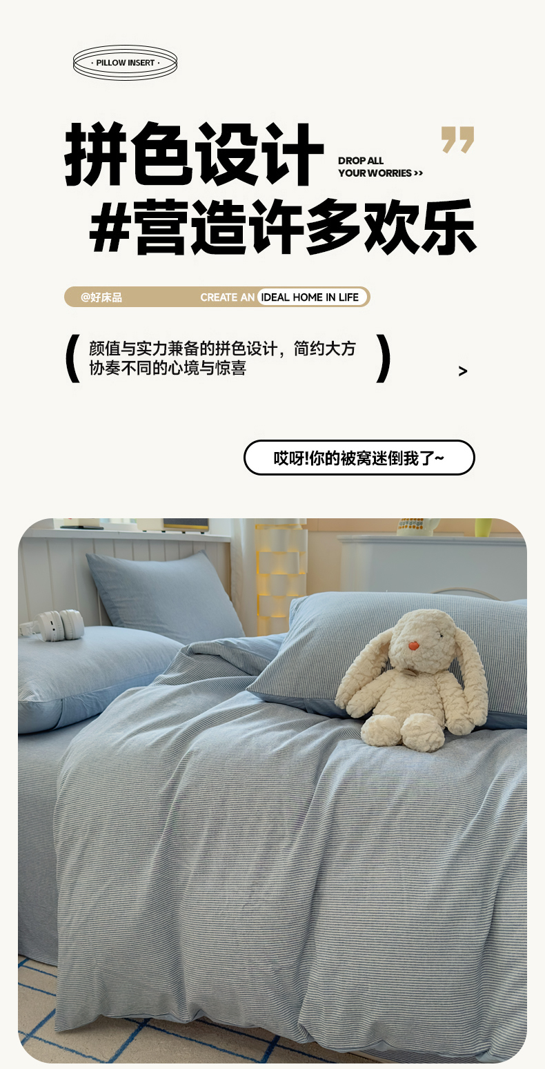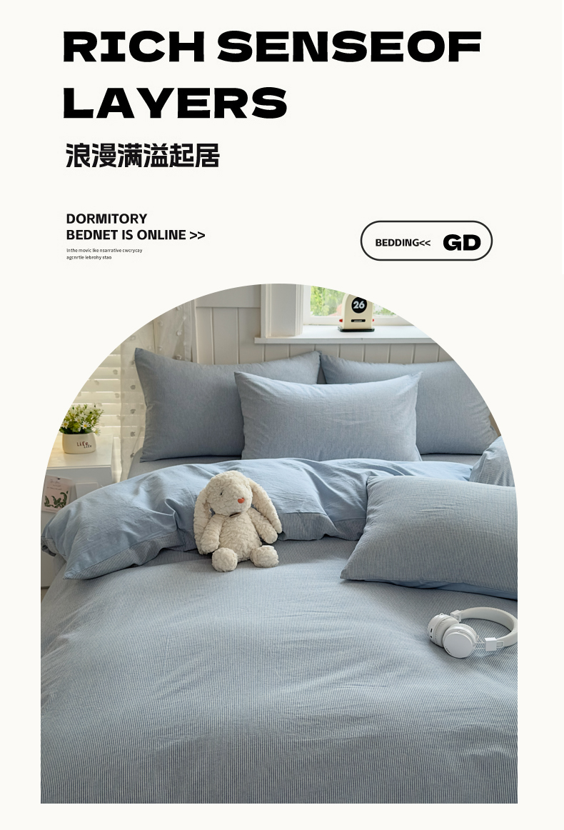 当前位置: 91家纺网 > 商品网购 > 床品套件 > 四件套 > 水洗棉四件套 > 晚依家纺 2025新款A类全棉色织水洗棉四件套纯棉格子纯色被套学生宿舍三件套定制定做 密条-浅蓝