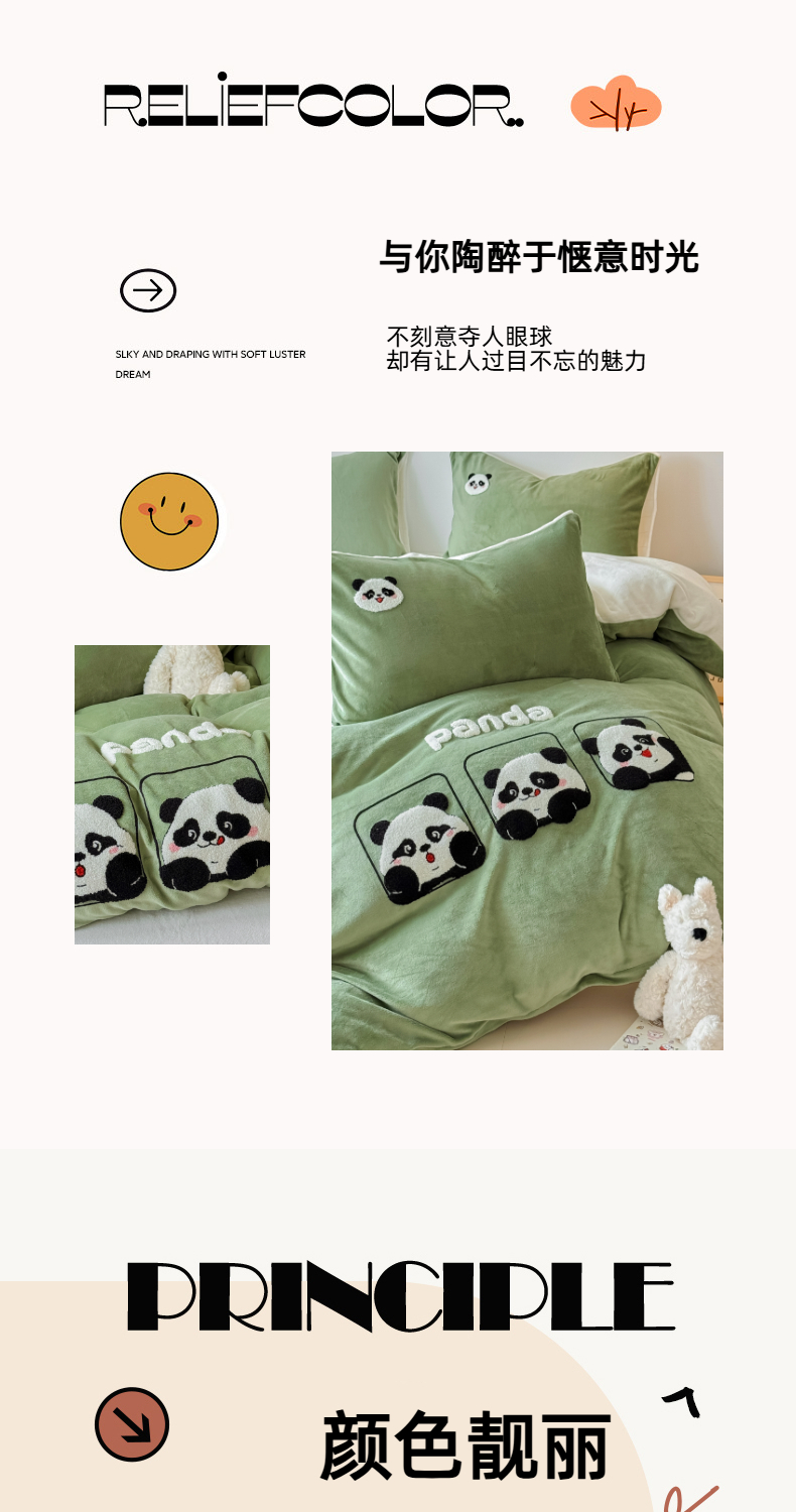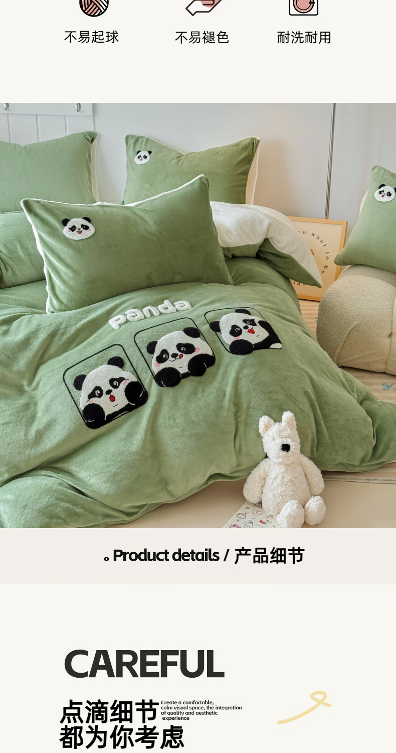 商品名称:莱凯家纺 2025新款毛巾绣牛奶绒四件套 熊猫派对
