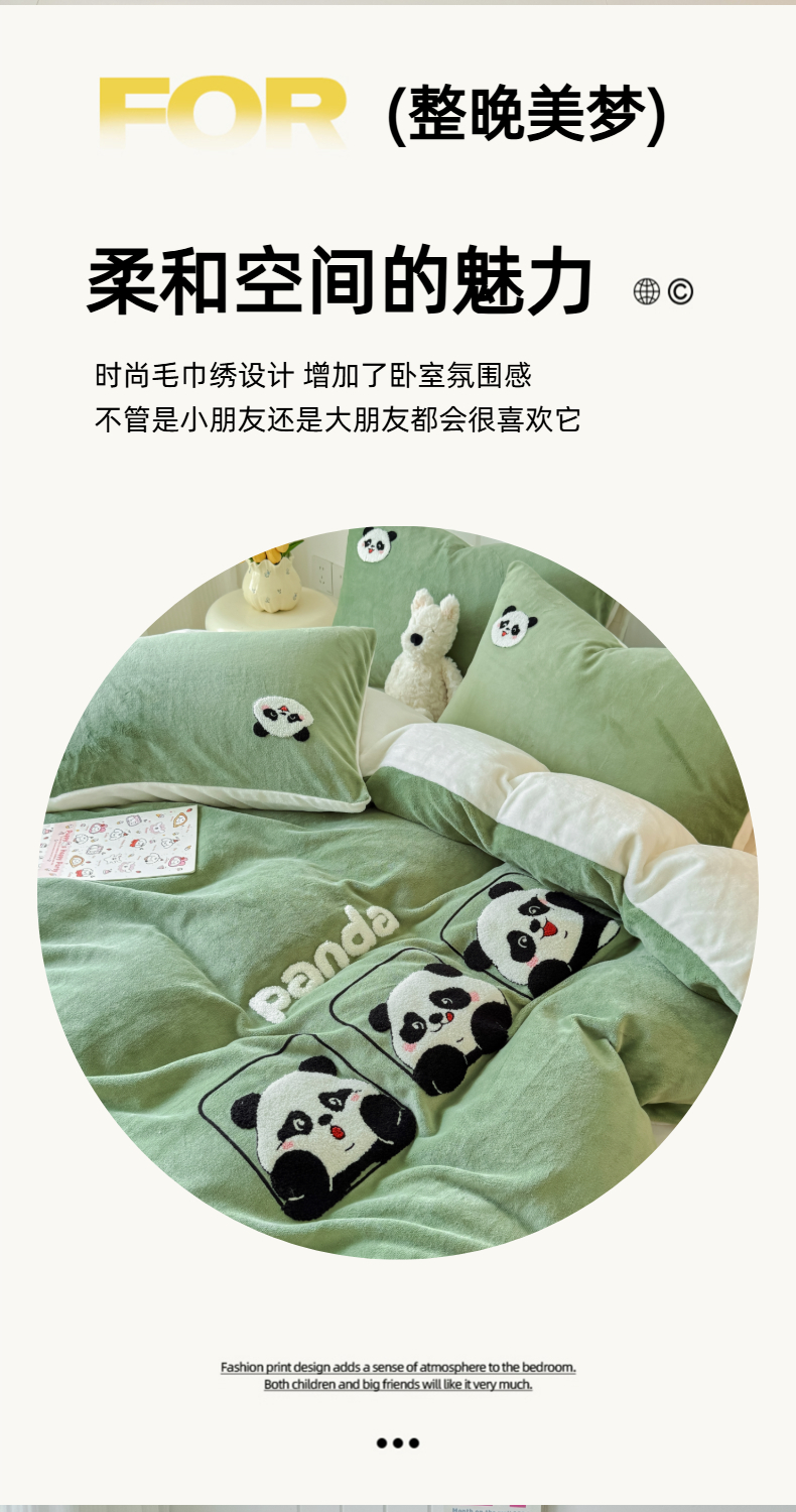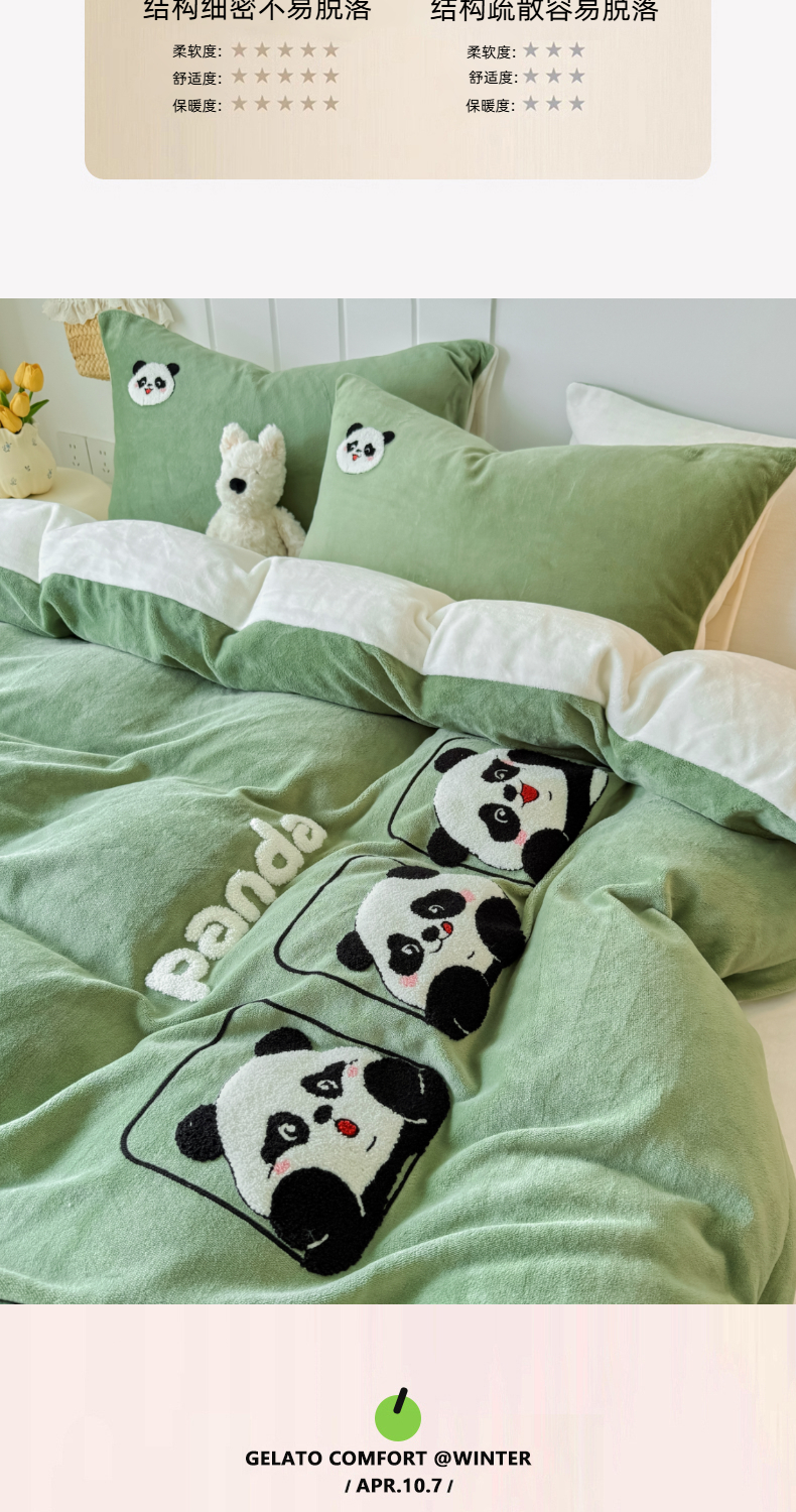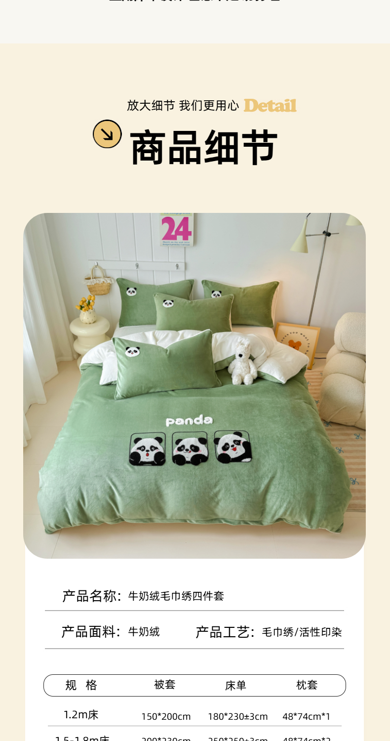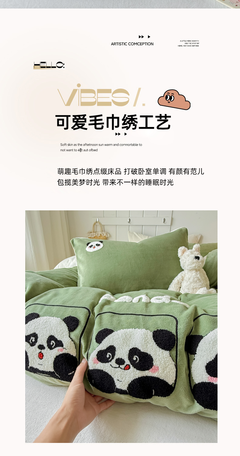 莱凯家纺 2025新款毛巾绣牛奶绒四件套 熊猫派对