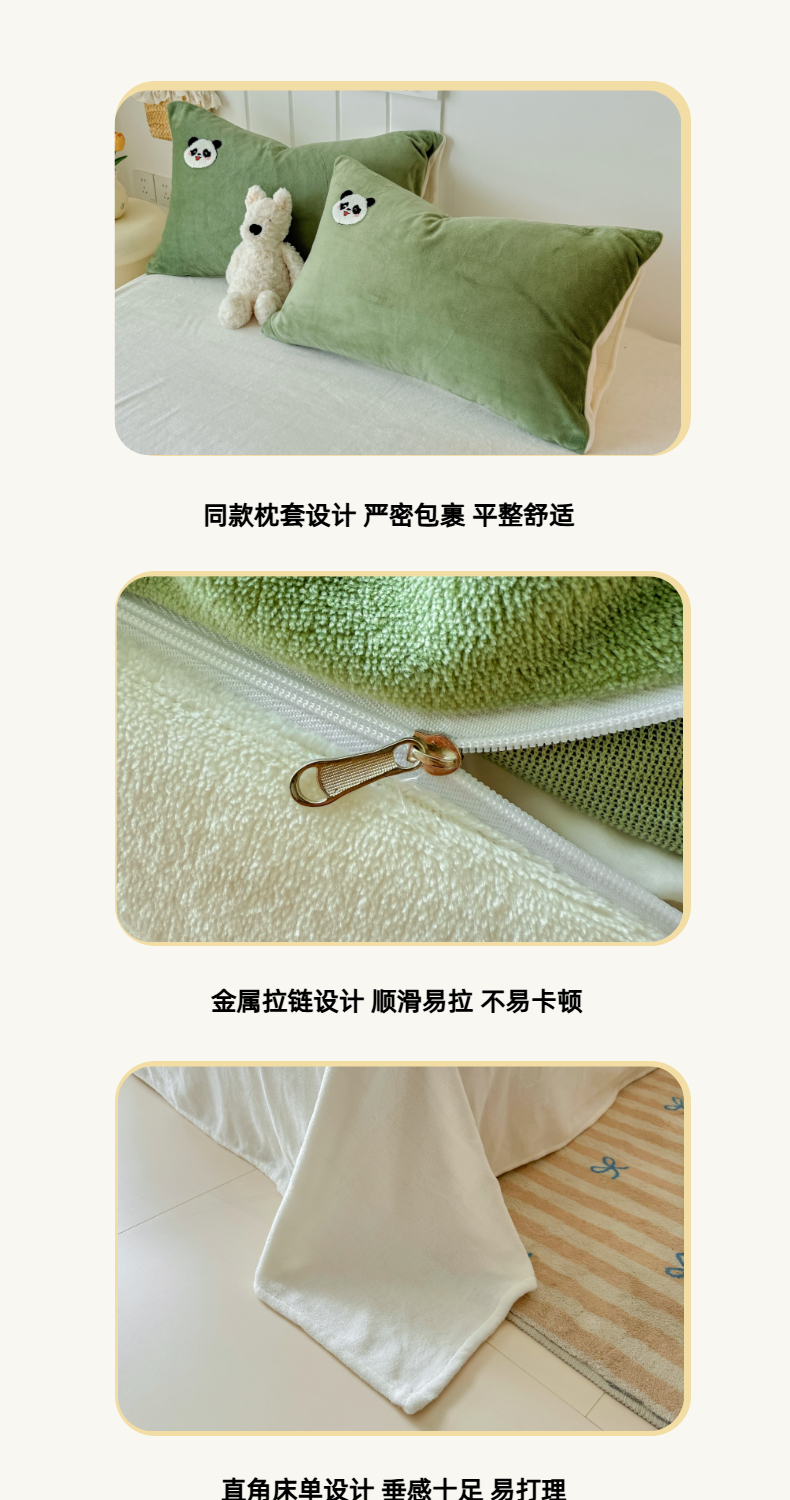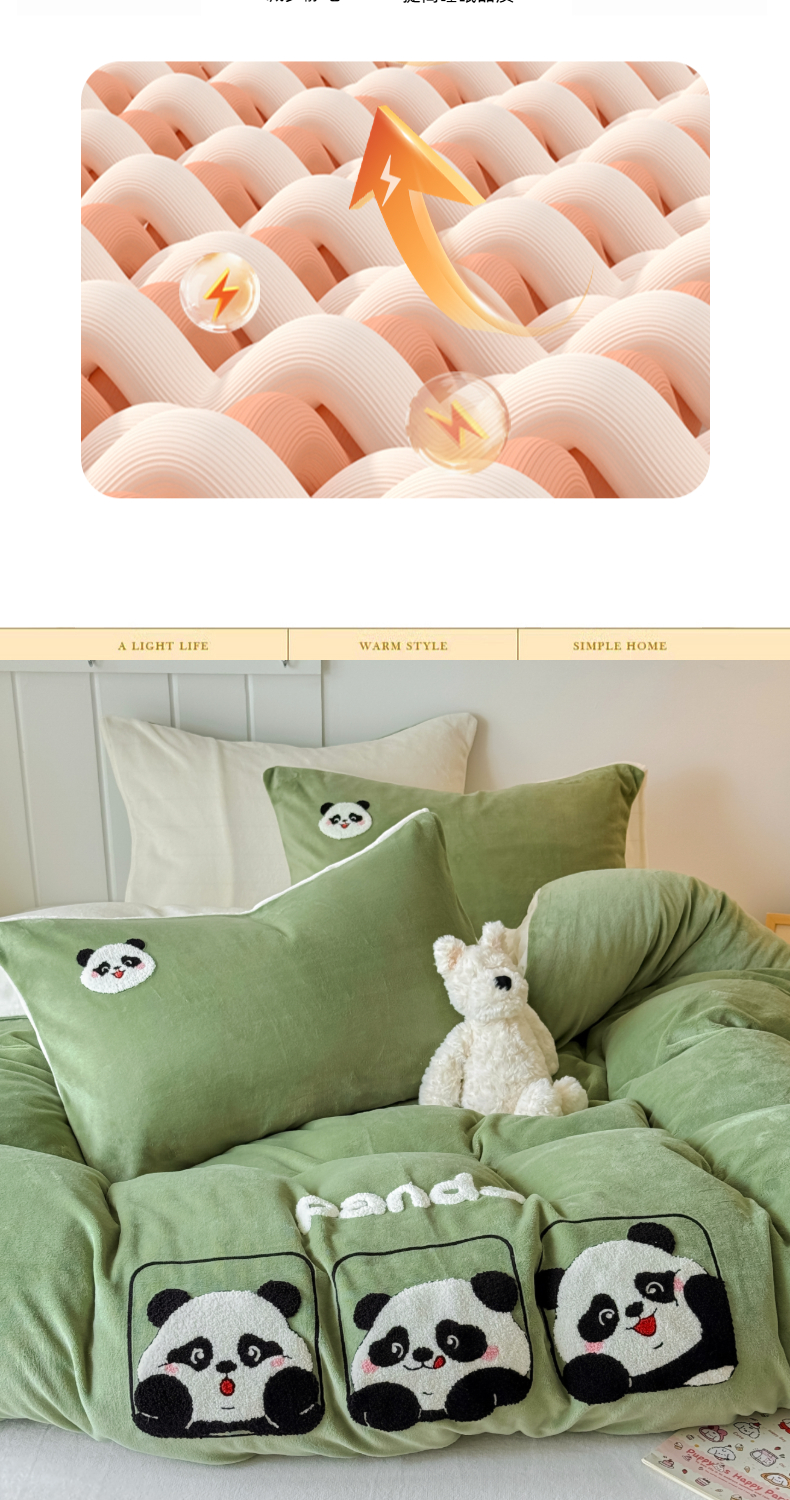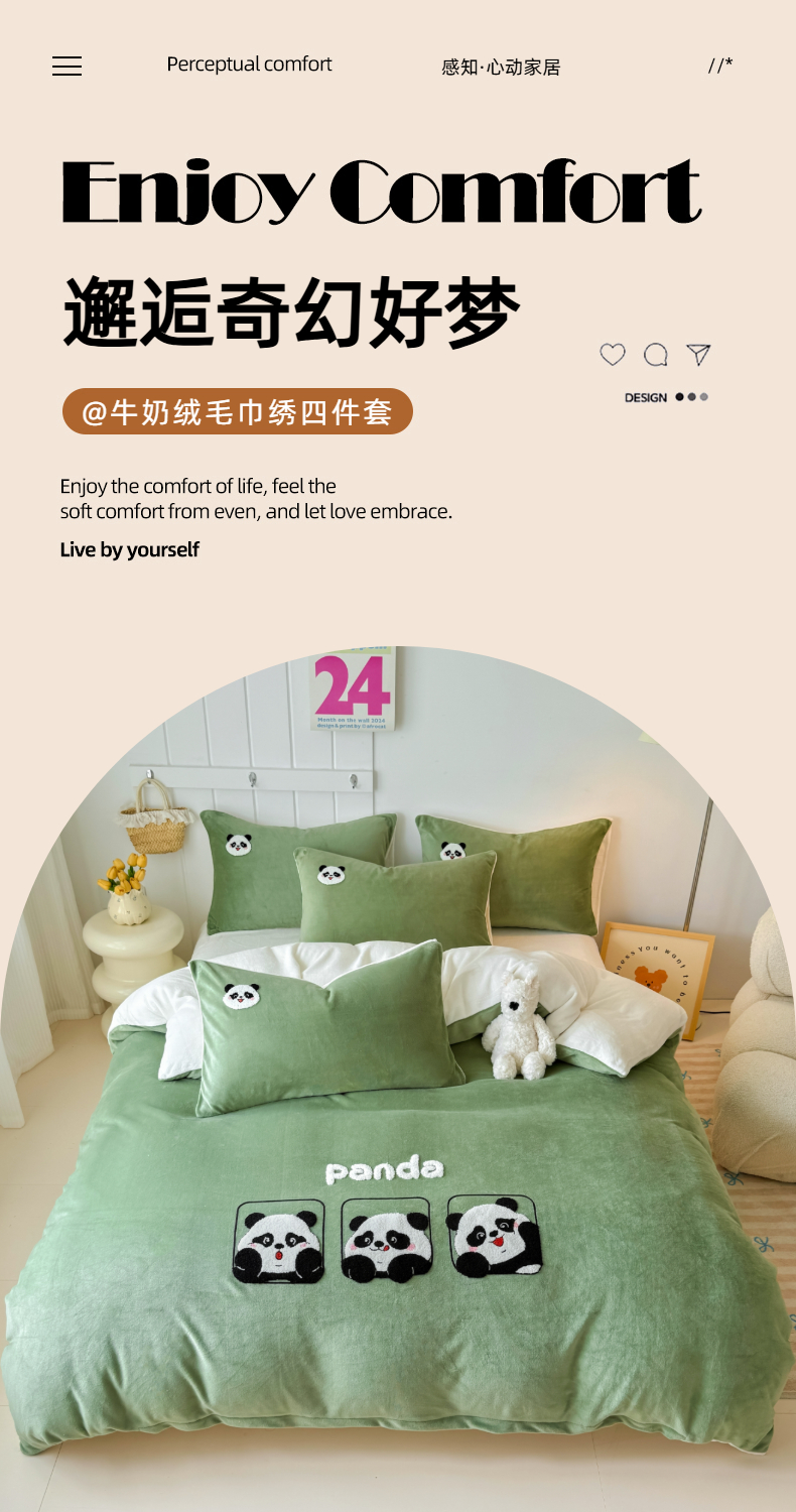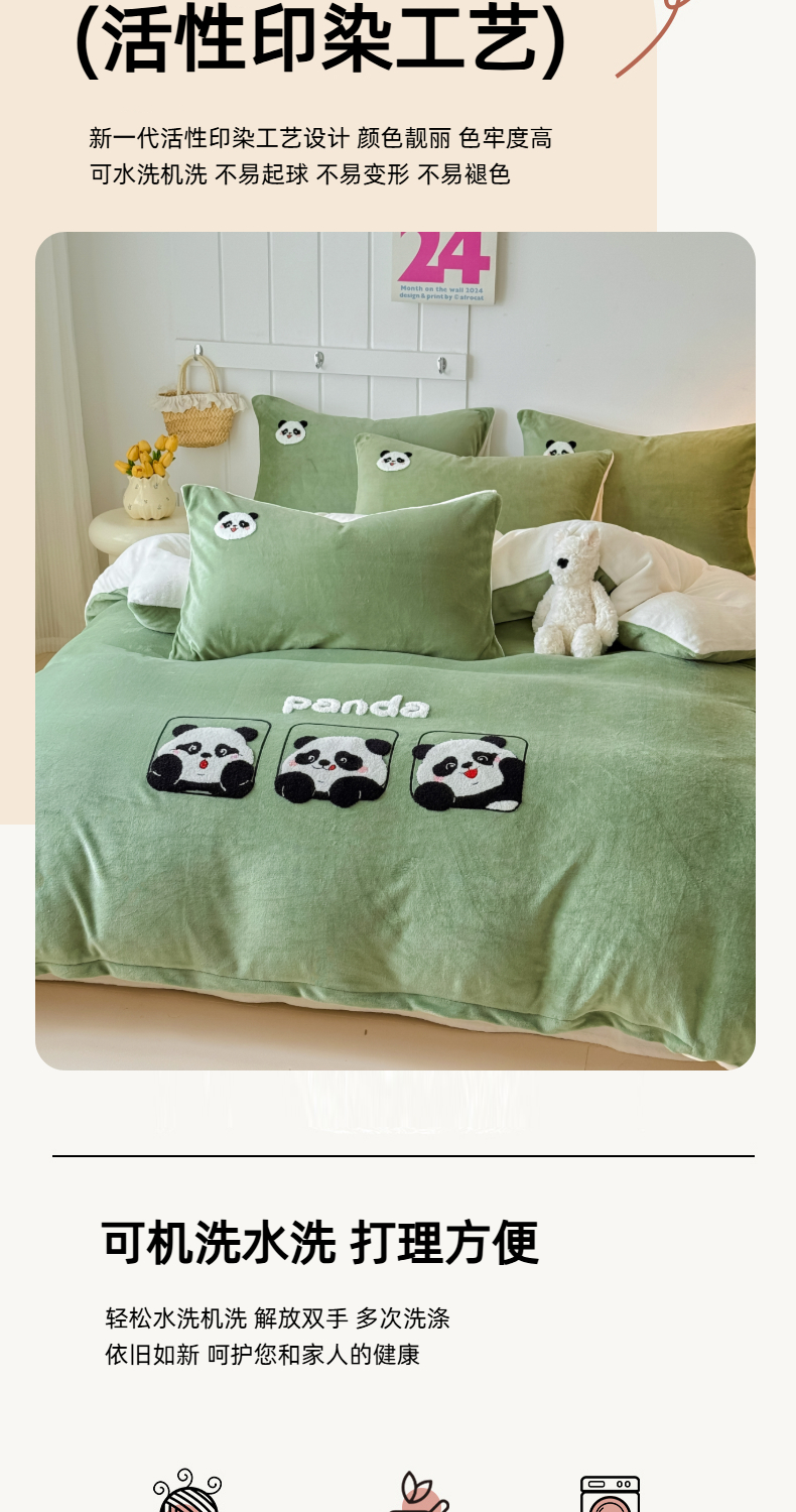 莱凯家纺 2025新款毛巾绣牛奶绒四件套 熊猫派对