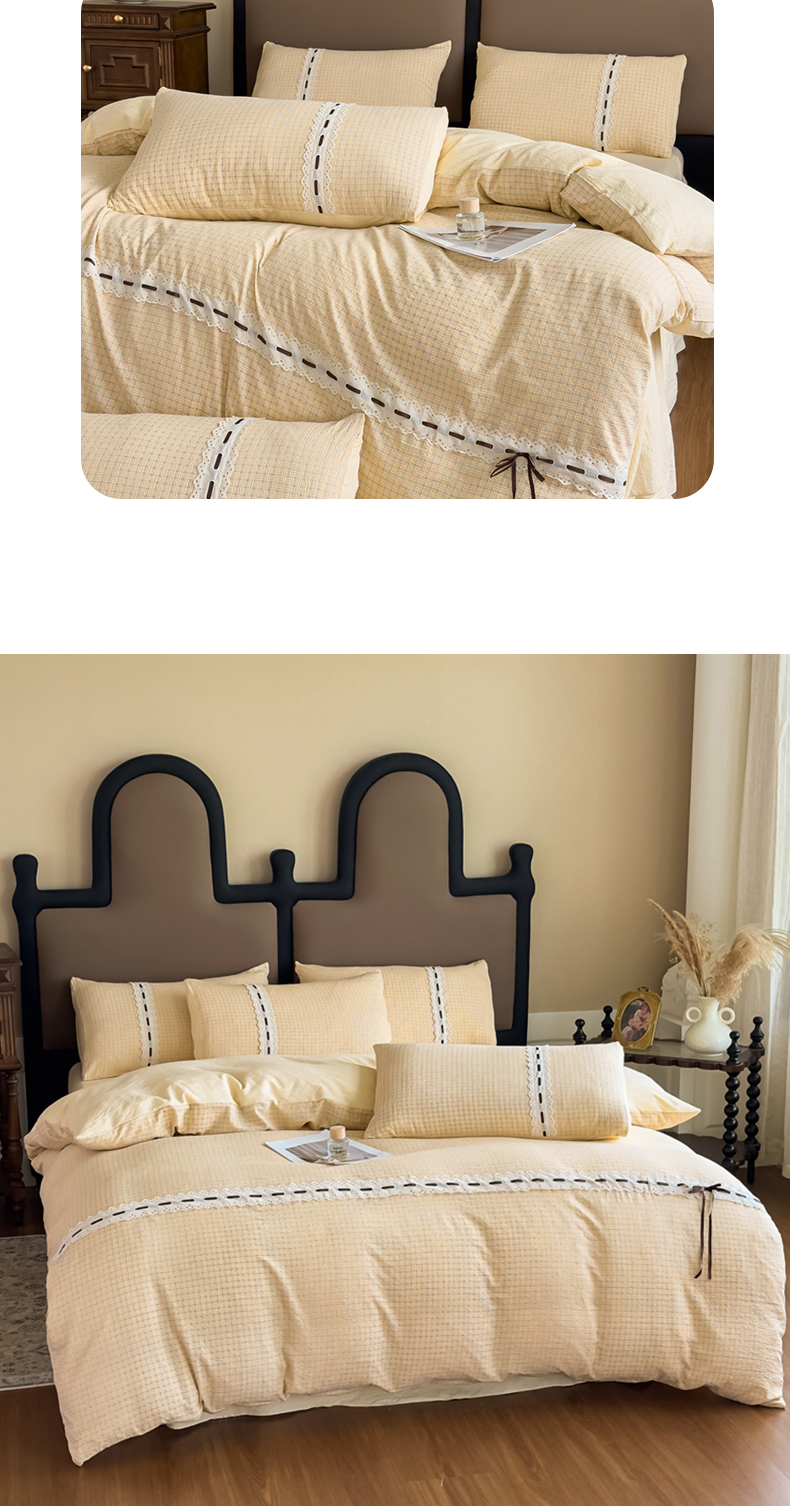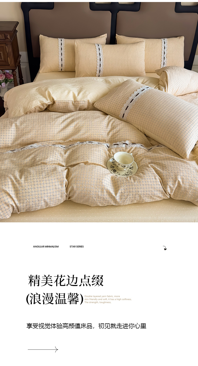 可思家纺2025新款云感木棉皱皱纱四件套 奶油格子
