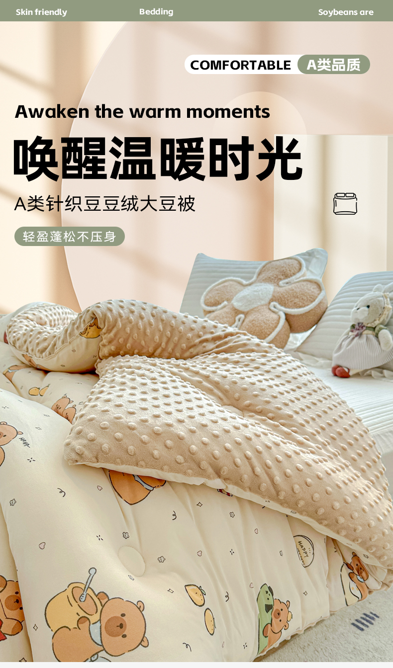 优被业 2025新款A类牛奶丝针织棉豆豆被 大豆被 冬被 被子被芯 卡皮巴拉