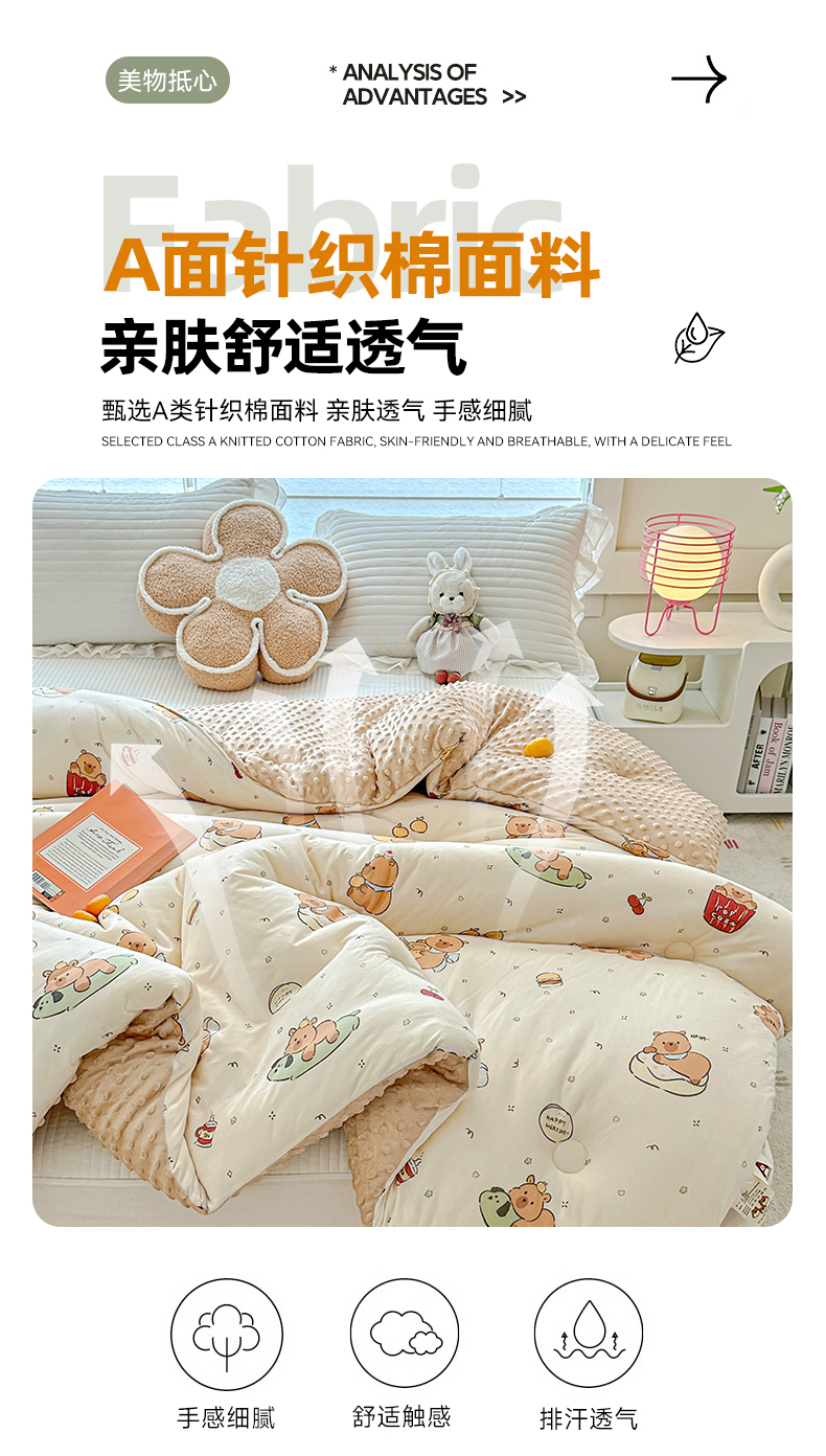 • 91家纺网 家纺一手货源 找家纺 优被业 2025新款A类牛奶丝针织棉豆豆被 大豆被 冬被 被子被芯 卡皮巴拉