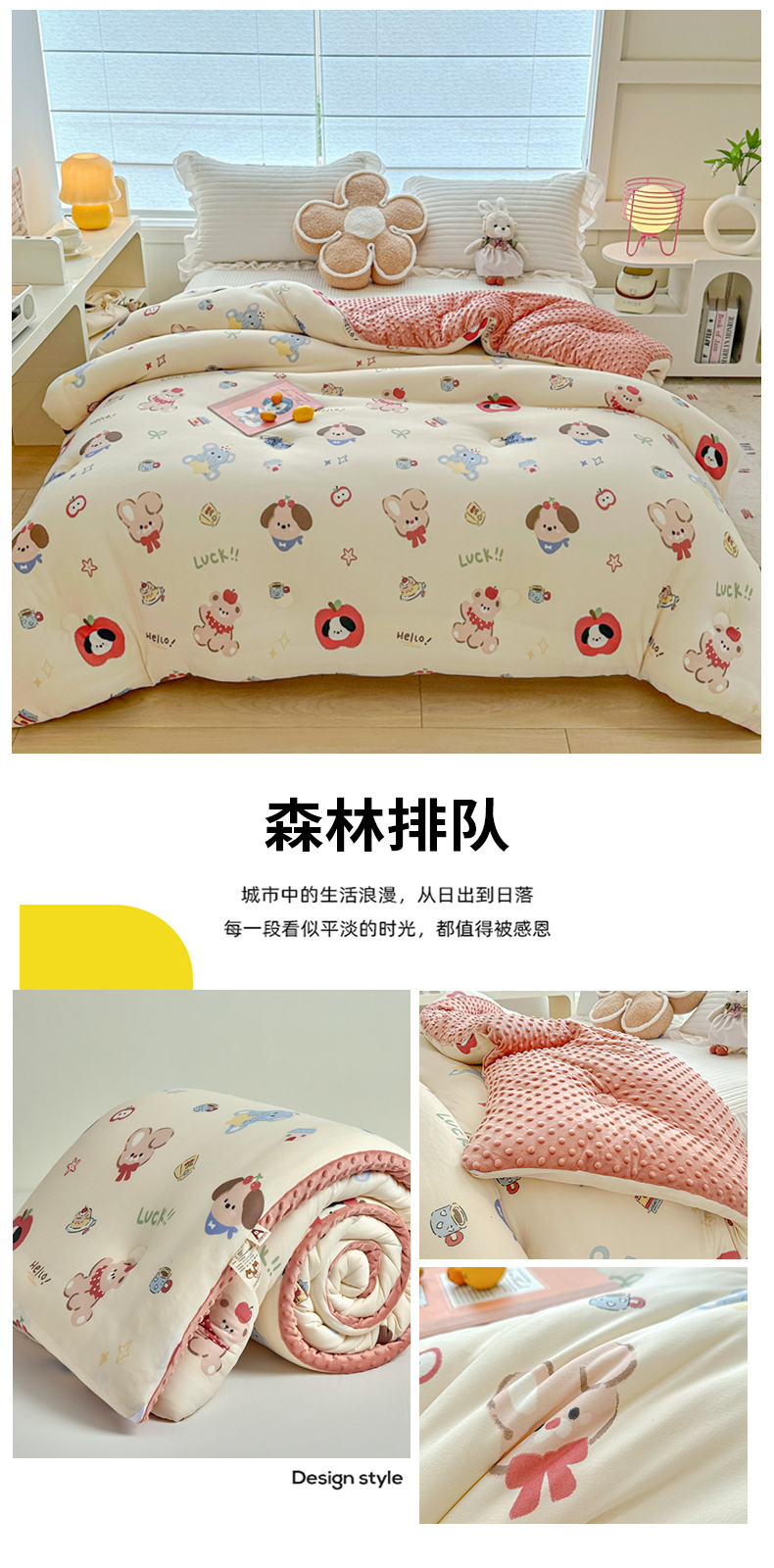 • 91家纺网 家纺一手货源 找家纺 (总)优被业 2025新款全棉双层纱皱皱纱夏被,南瓜熊猫,宠物乐园,小爱心,爱心熊,花语,花馨,蘑菇小兔