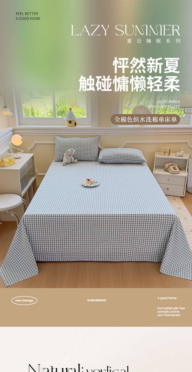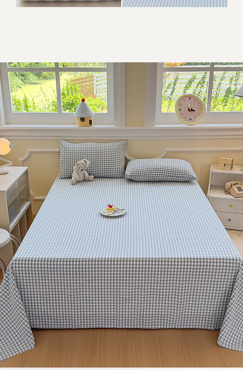 商品名称:菡宝 2025新款全棉纯棉色织水洗棉单床单 蓝小格
