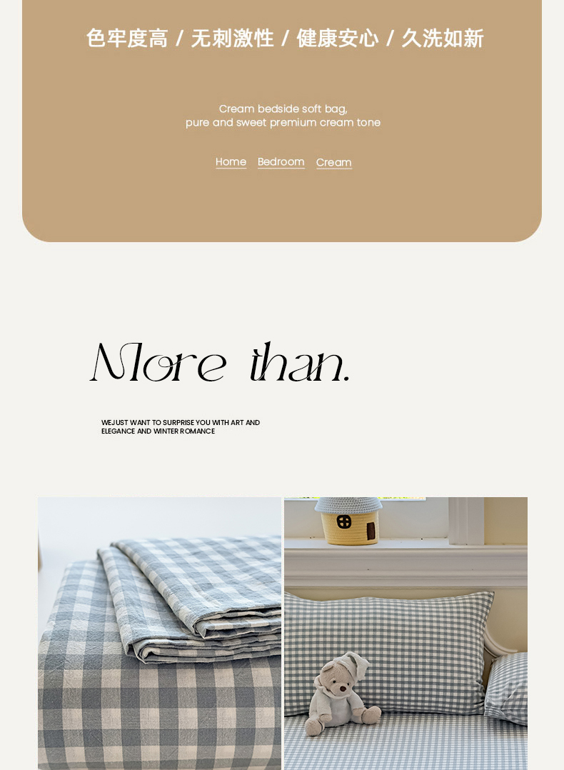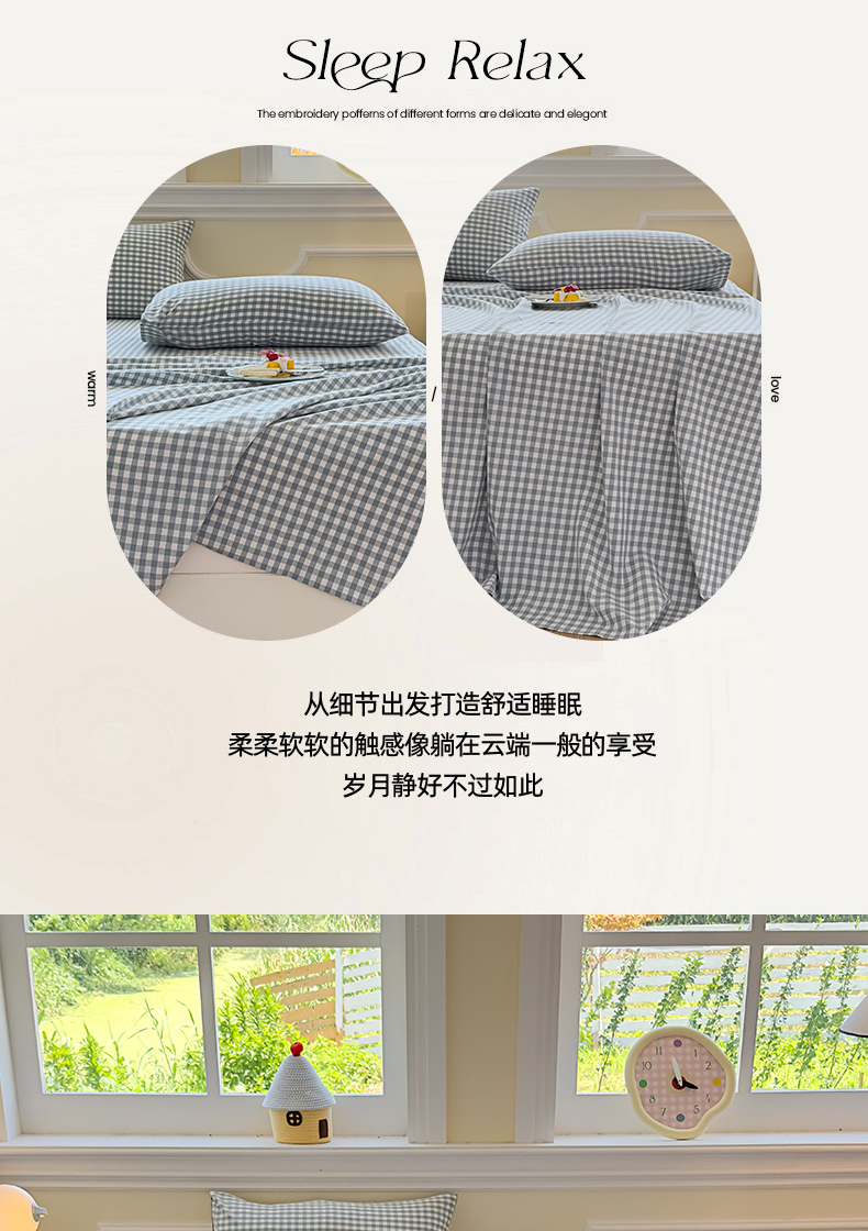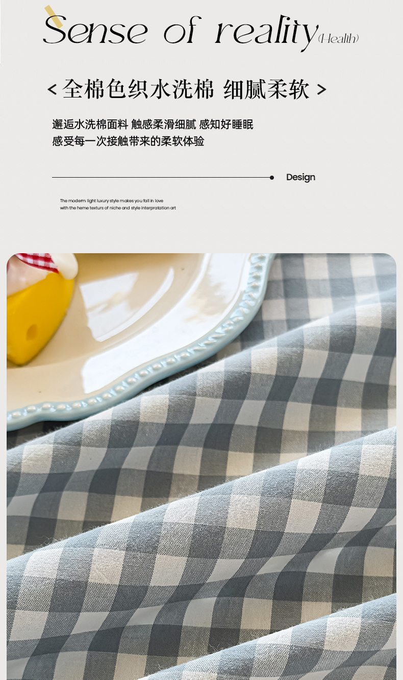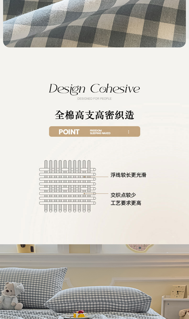 (总)菡宝 2025新款全棉纯棉色织小提花四件套支持定制定做尺寸,暴力熊卡其,暴力熊绿,大方块灰,大方块紫,千鸟格白,千鸟格灰,千鸟格绿,四叶草卡其