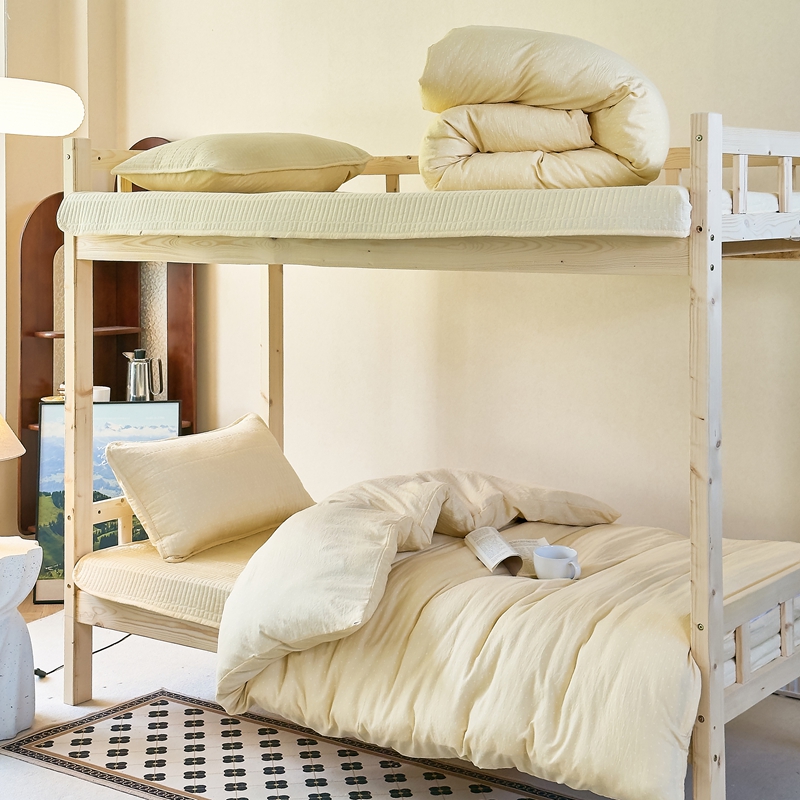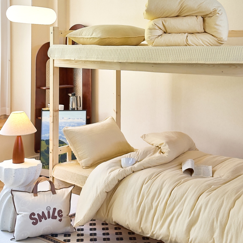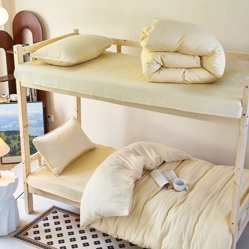 梦莱斯2025新款皱皱棉学生款床盖三件套 波点黄