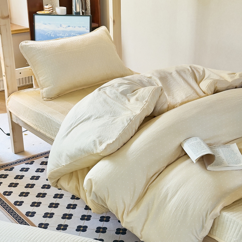 商品名称:梦莱斯2025新款皱皱棉学生款床盖三件套 波点黄