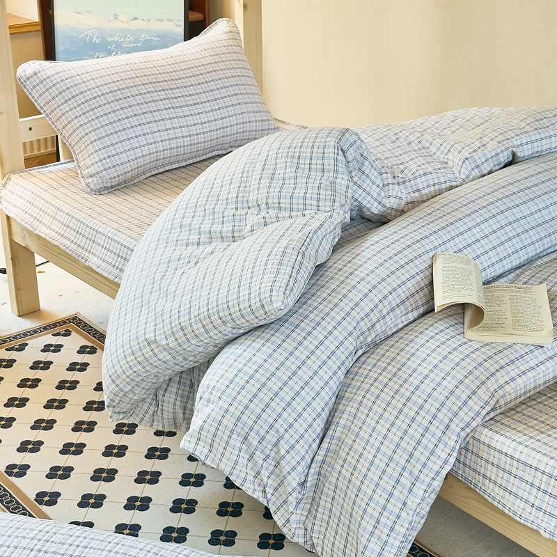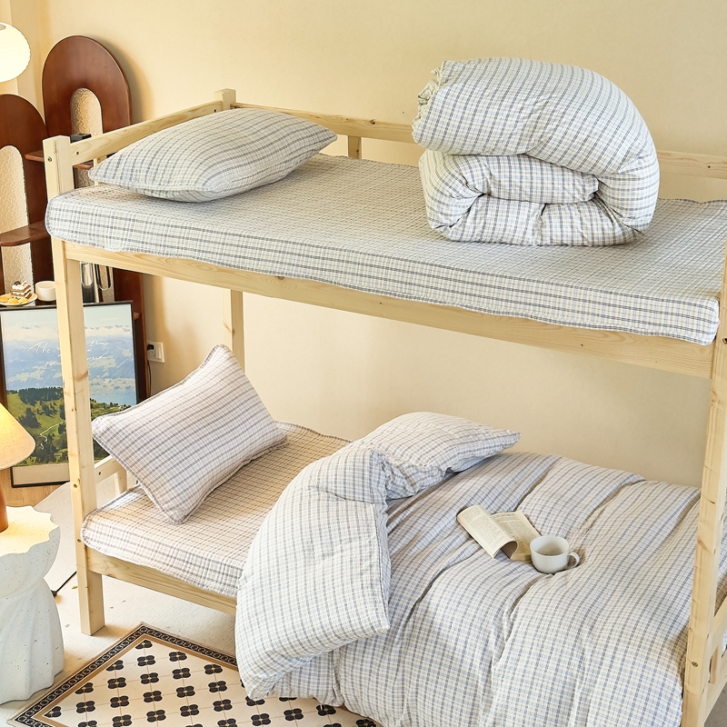 (总)梦莱斯2025新款皱皱棉学生款床盖三件套,波点粉,波点黄,波点咖,波点蓝,波点紫,法式少女,花海绿,简夕米,蓝格子,罗格先生咖,罗格先生蓝,迷你格灰,迷你格米,珊瑚海粉,水墨嫣然,往事黄,往事咖,至尚