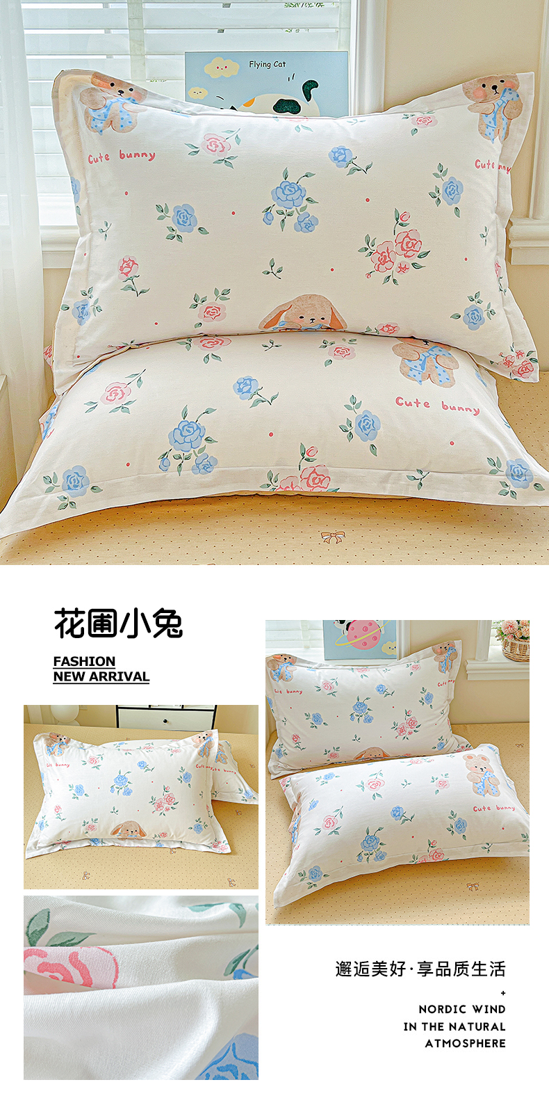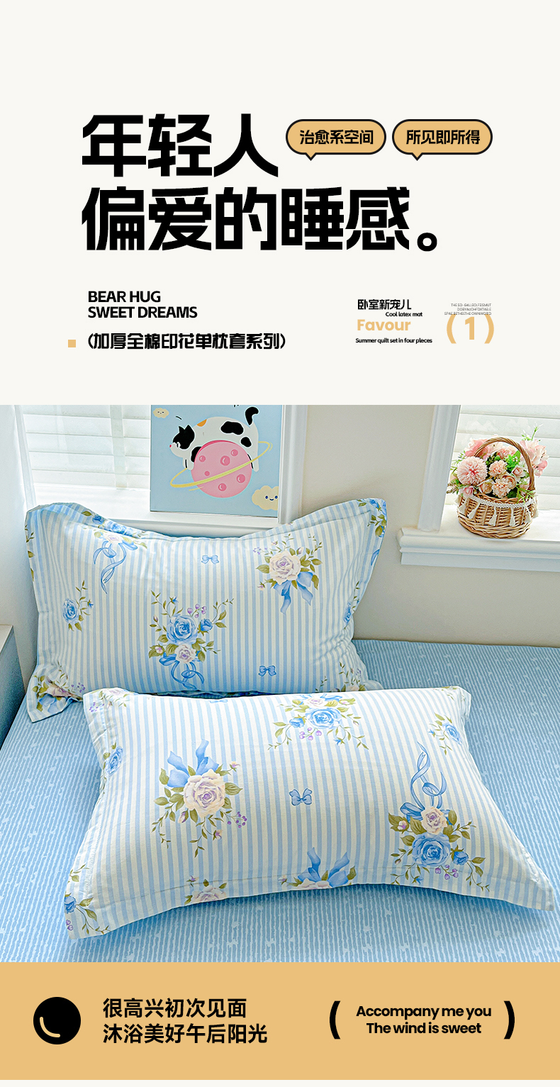 (总)恩泽家纺 2026春夏新款全棉纯棉12868印花四件套及单品系列-单枕套枕套单件,草莓季,多彩世界,护花使者,花丛小兔子,花季少女,花梦间,极简主义,凯蒂宝贝,可爱喵,拉菲特,洛琳粉,绿格小熊,帽子小狗,喵喵,魔法帽,奶油阿布,派对小狗,苹果小猫咪,时尚猫咪粉,田园小花,碎花兔兔,甜小桔,甜心汪·咖,甜心汪·蓝,晚樱,小狗乐乐,小精灵,小萌物,小淘气,小甜心,小熊布丁,小熊猫,星动情节,星梦童话,星愿萌犬,熊猫与牛油果,学院风,雪纳瑞,樱桃派,樱桃兔,樱桃小熊,宅宅女孩
