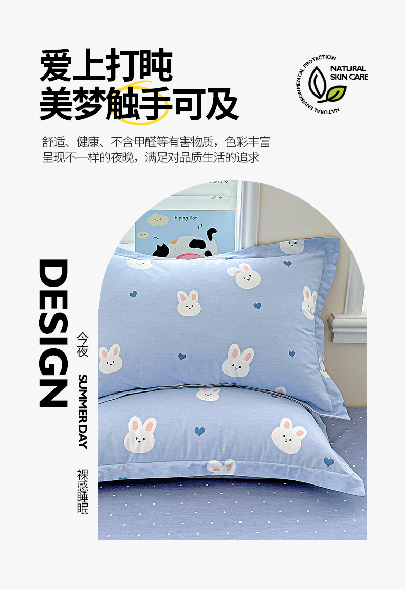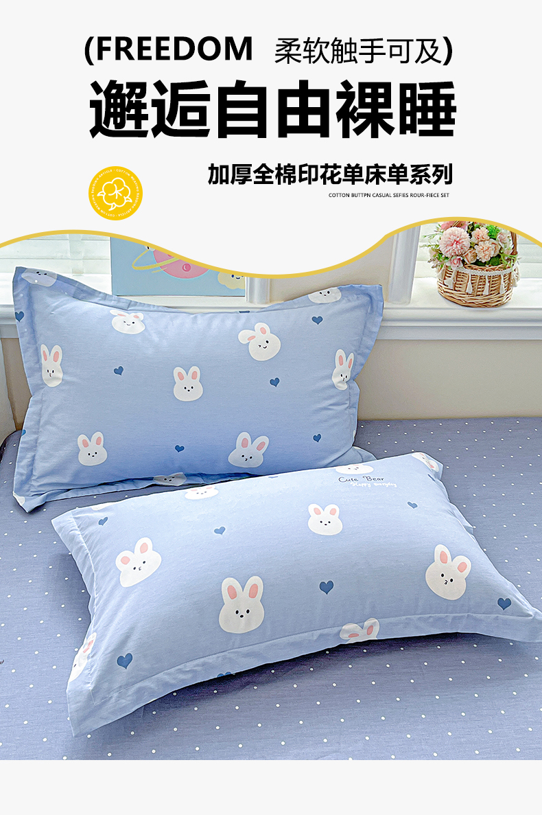 商品名称:恩泽家纺 2025新款加厚全棉纯棉印花系列枕套单件-单枕套 桃心小兔
