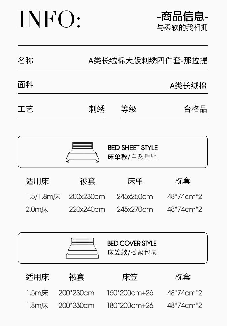 【床笠款】1.5四件套-被套200x230 | ¥225.00 |