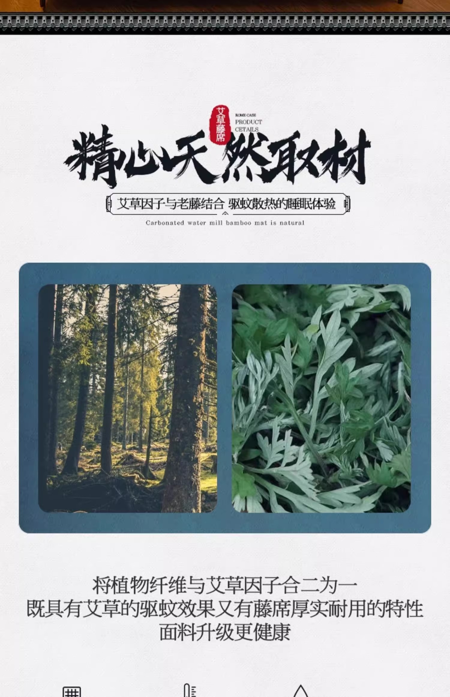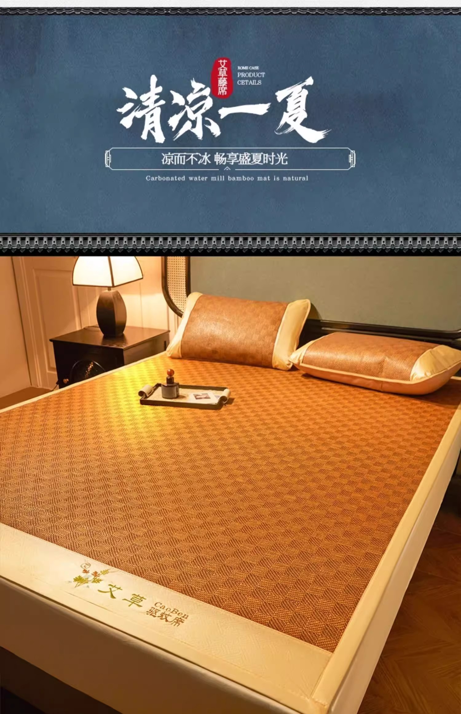 商品名称:缦吉 2025款舒适好眠艾草冰藤席凉席子 饼干花