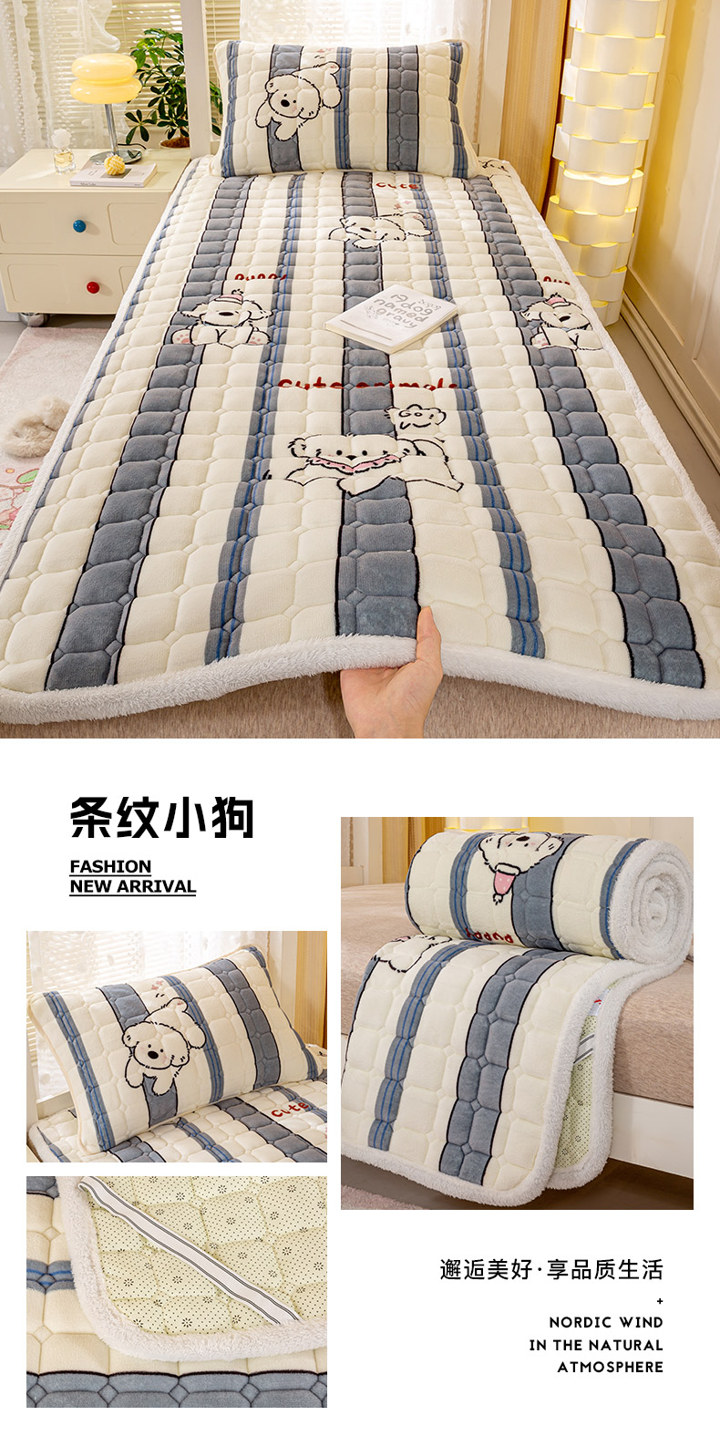 商品名称:(总)眠势力 2025新款牛奶绒学生床宿舍床垫夹棉加厚床褥子秋冬季保暖床护垫
