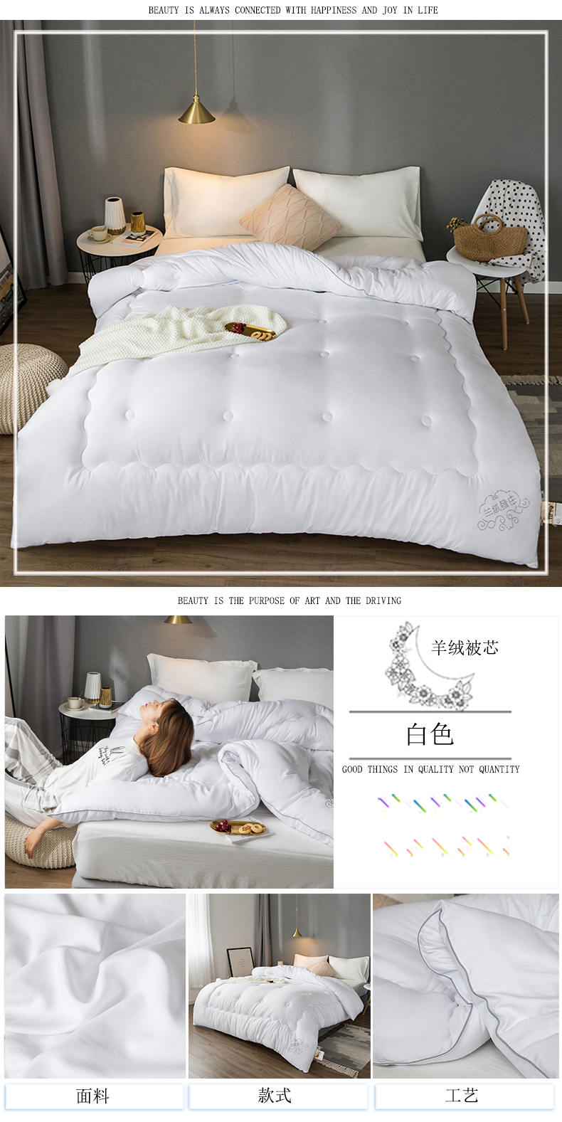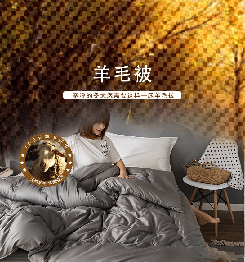商品名称:VIP被业 2025新款简约无味纯色羊毛被冬被被子被芯 灰色