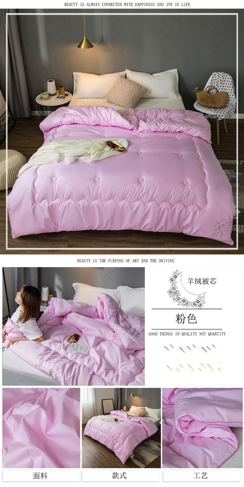 (总)VIP被业 2025新款60S立体全棉大豆被子被芯,白色,粉色,灰色