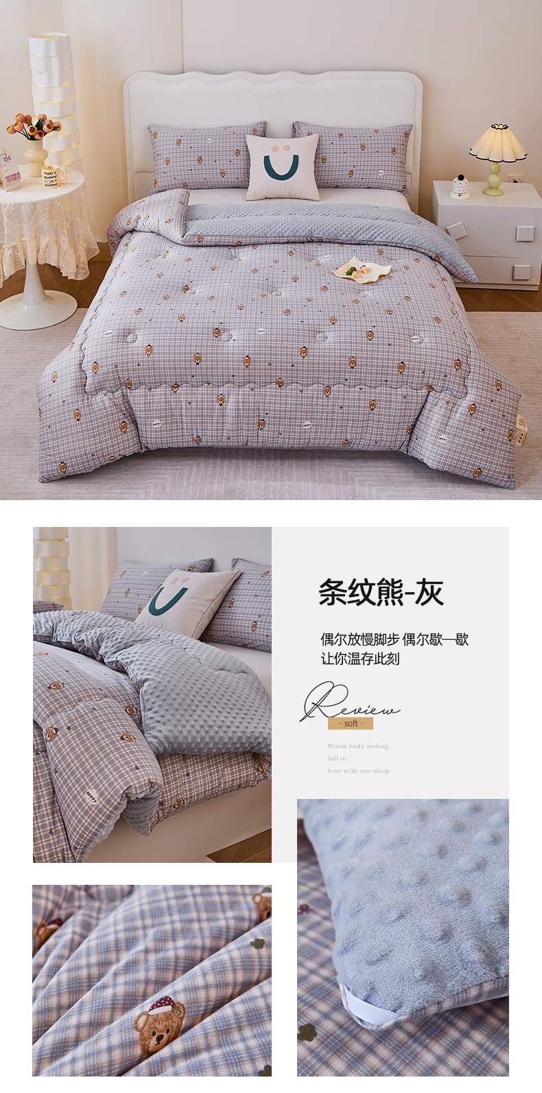 当前位置: 91家纺网 > 商品网购 > 被子 > 冬被 > 天瑜家纺 2025新款针织棉豆豆绒大豆被冬被被子被芯 条纹熊灰