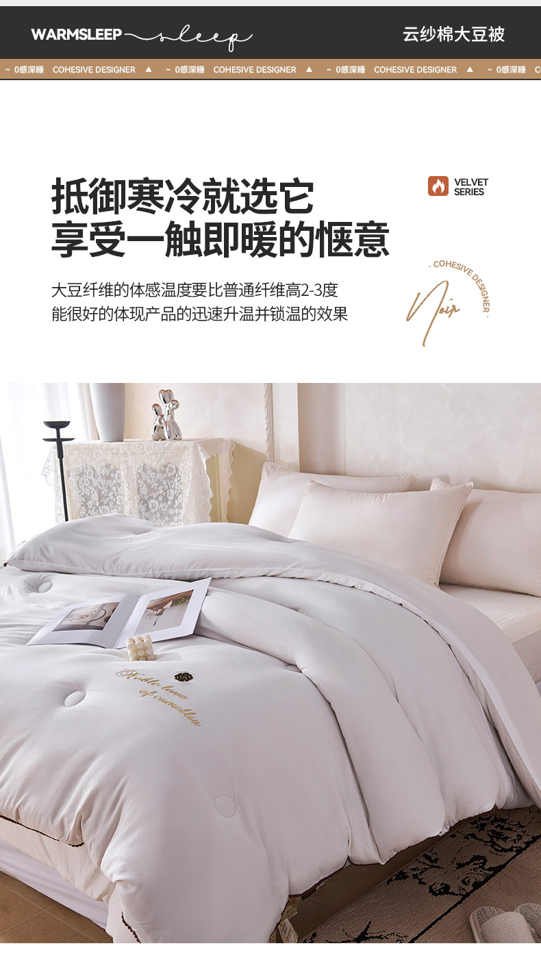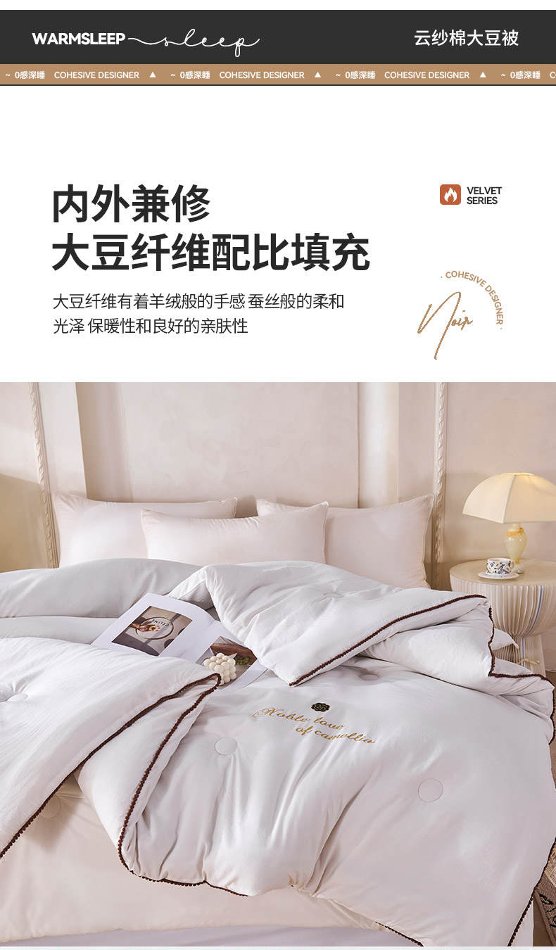爱诗诺家纺 2025年新款3D立体烫画亲肤保暖云纱棉大豆被被子被芯 云纱棉-白