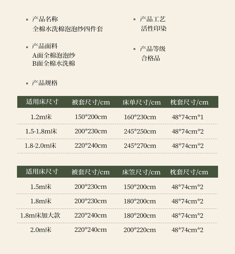 1.8m床笠款四件套(被套加大) | ¥195.00 |