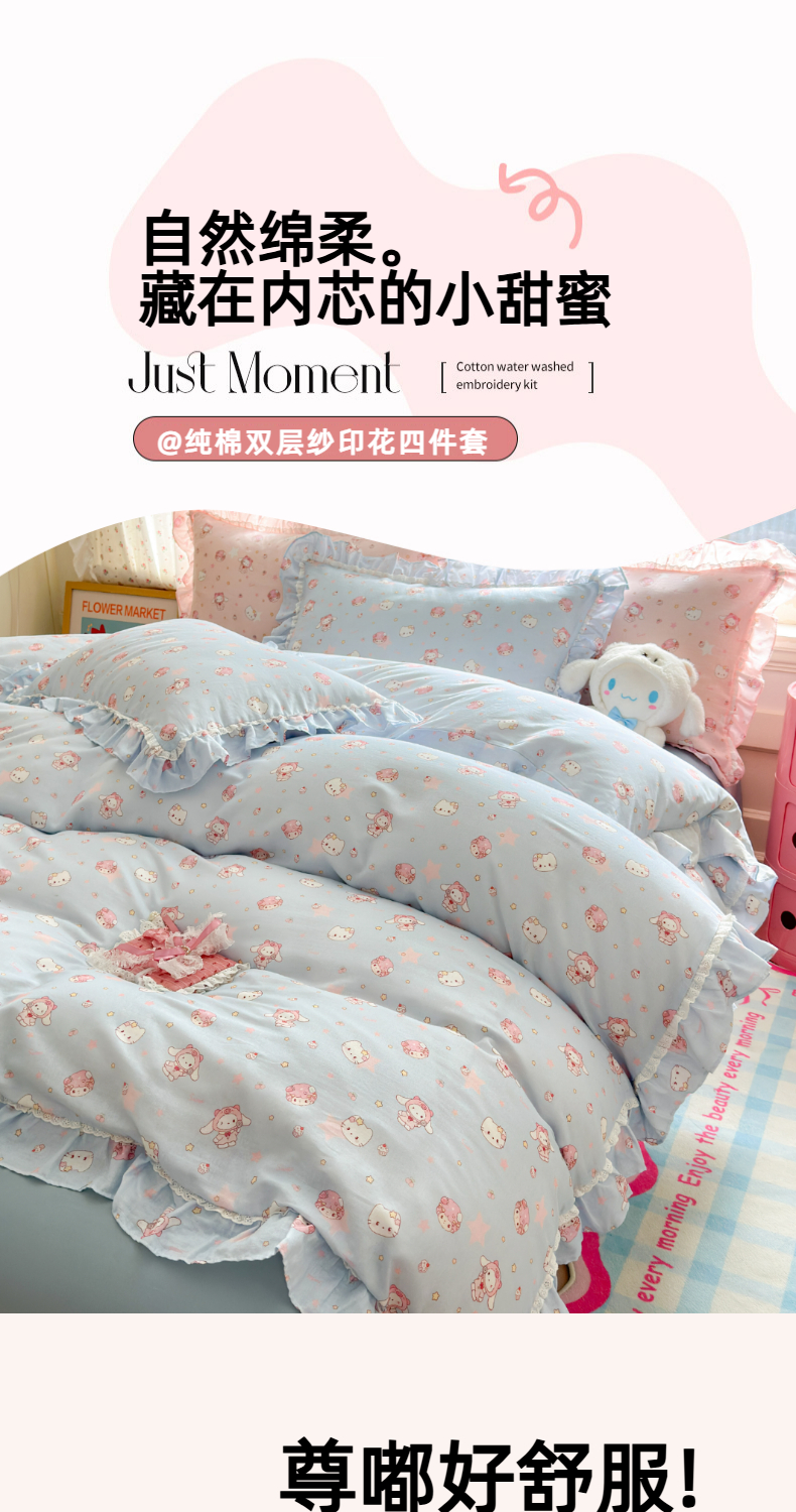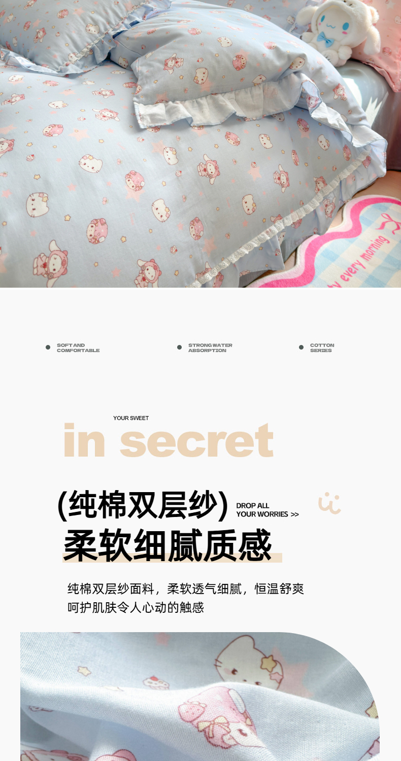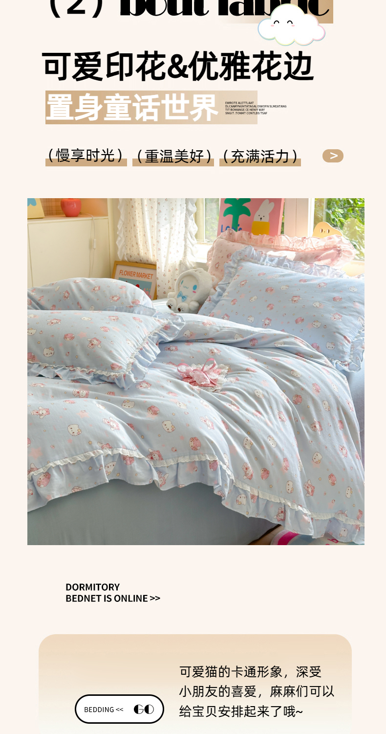 当前位置: 91家纺网 > 商品网购 > 床品套件 > 四件套 > 双层纱四件套 > 淑女公社家纺 2025新款全棉纯棉双层纱四件套-可爱猫 可爱猫 蓝色