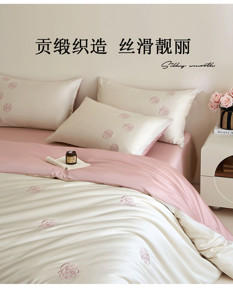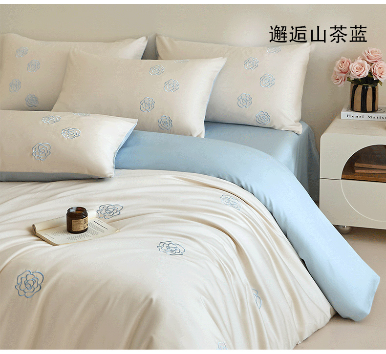 当前位置: 91家纺网 > 商品网购 > 床品套件 > 四件套 > 长绒棉四件套 > (总)618家纺 2025新款A类新疆长绒棉四件套--邂逅山茶
