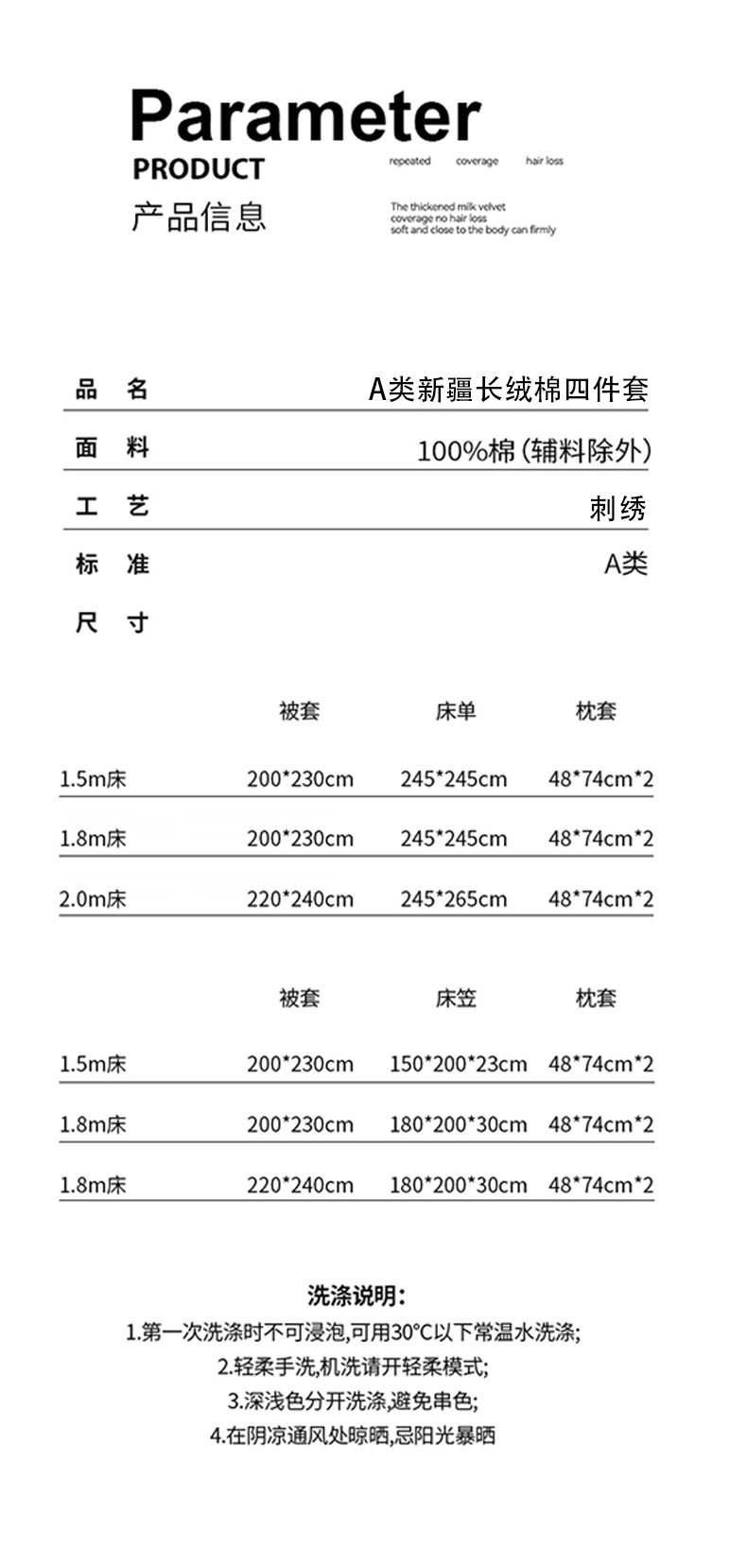 1.5m床笠款四件套-被套200*230床笠150*200枕套48*74*2 | ¥165.00 |