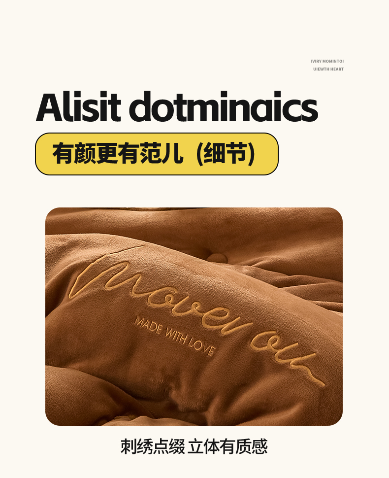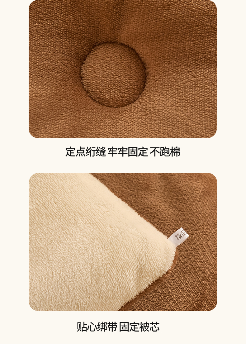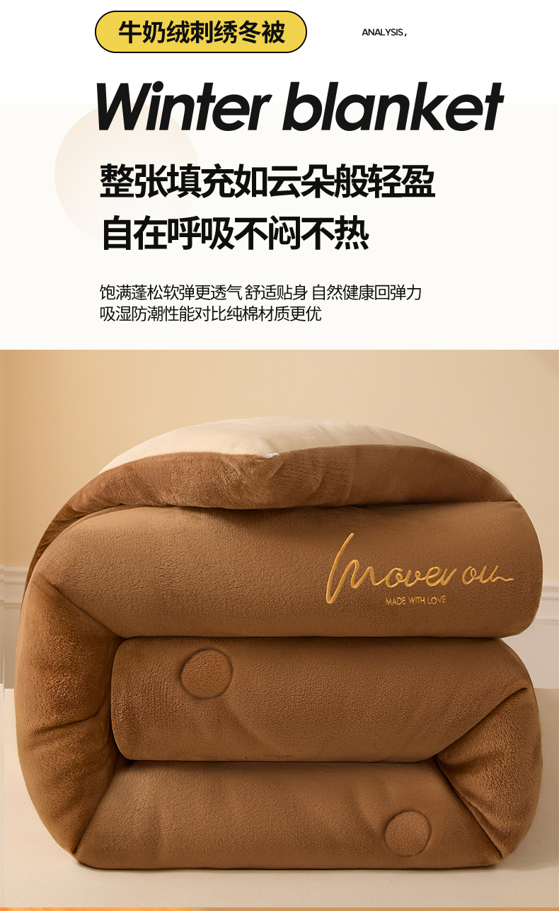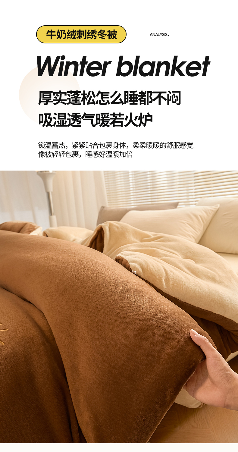 商品名称:暖芯家纺 2025新款双拼色绣花牛奶绒冬被被子被芯 太妃咖